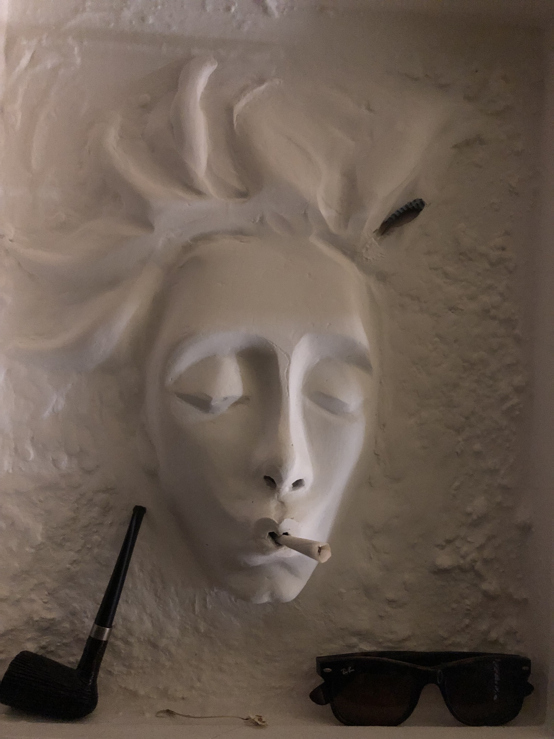 Klei Zelfportret Attributen Zonnebril Reliëf Pijp Shaggy