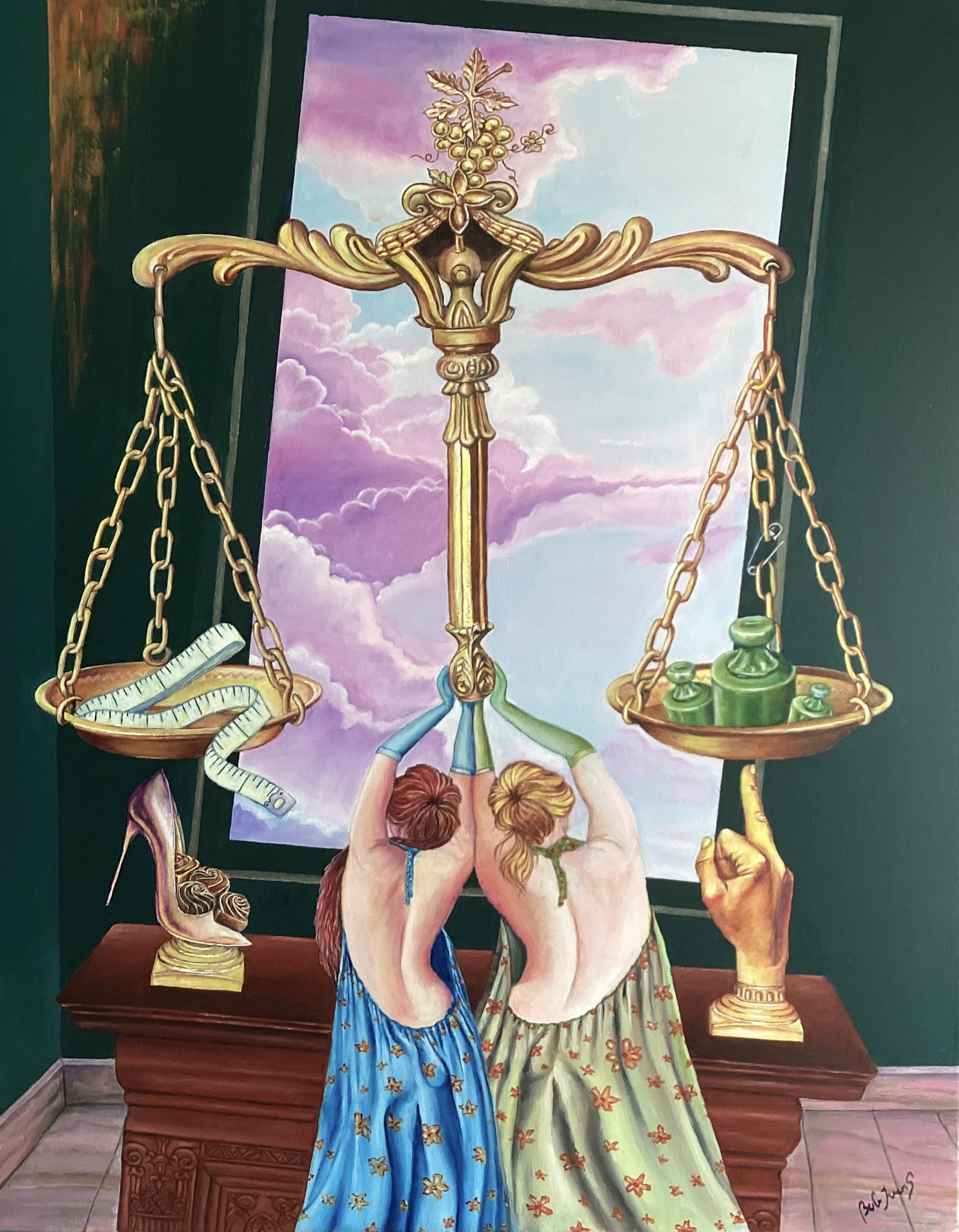 Balans Gewicht Vinger Schoen Meter Vrouwen Venster Wolken