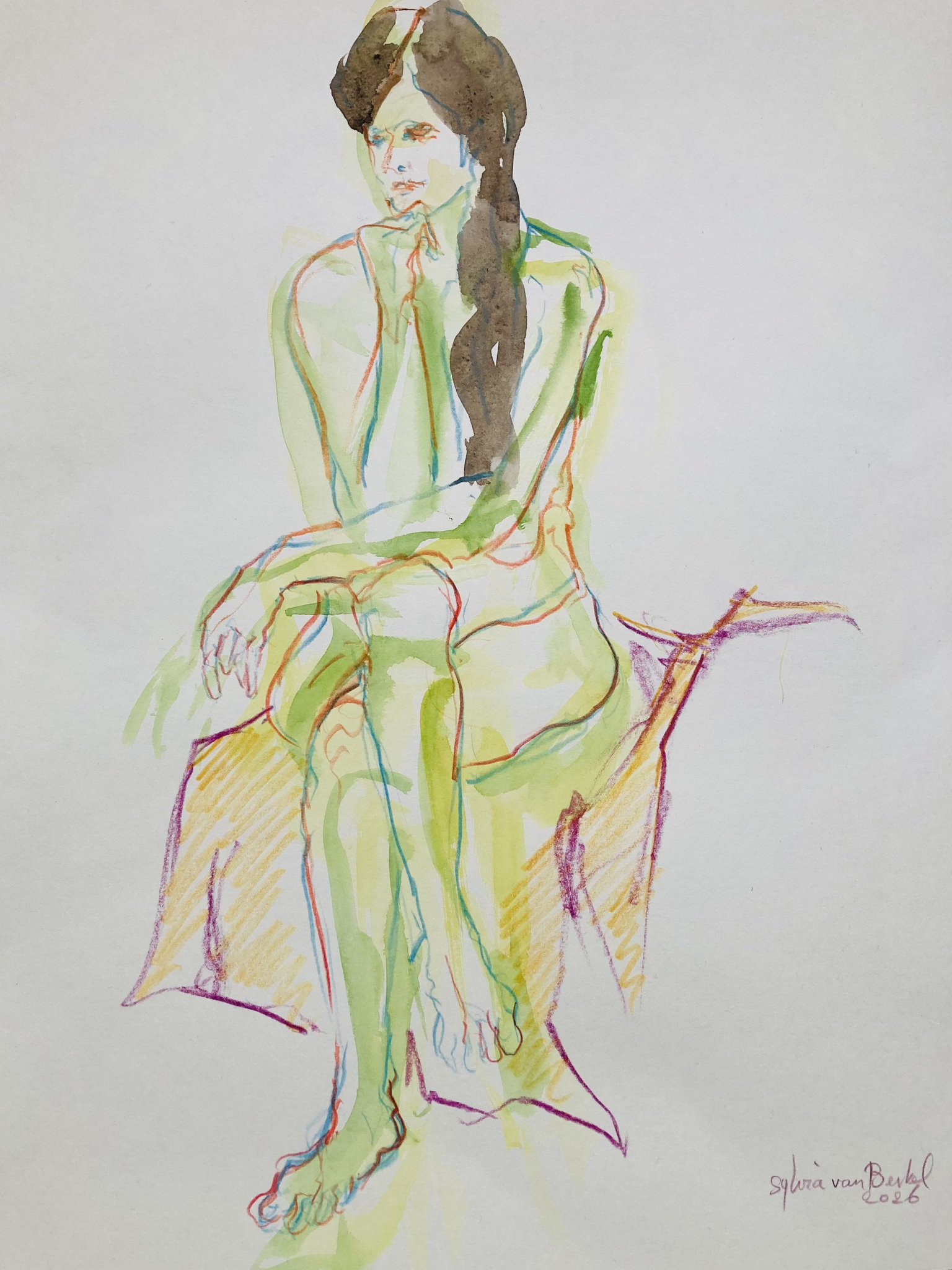 Zittende naakte vrouw