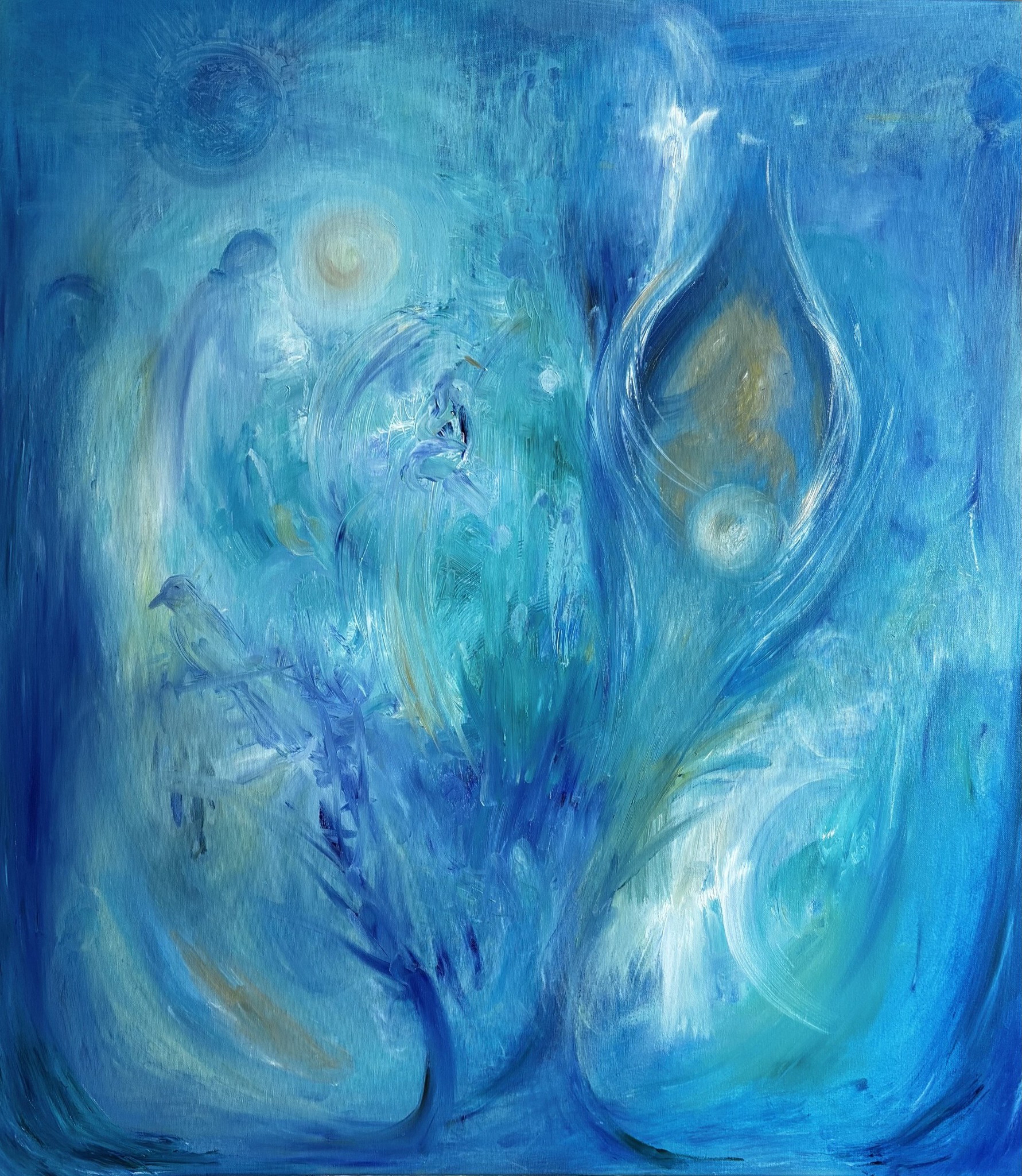 Mijn schilderijen ontstaan intuïtief en mediamiek, vanuit verbinding met de Lichtwereld. Gevoel leidt het proces. Kleuren, vormen en symbolen dienen zich aan en dragen een diepere betekenis.