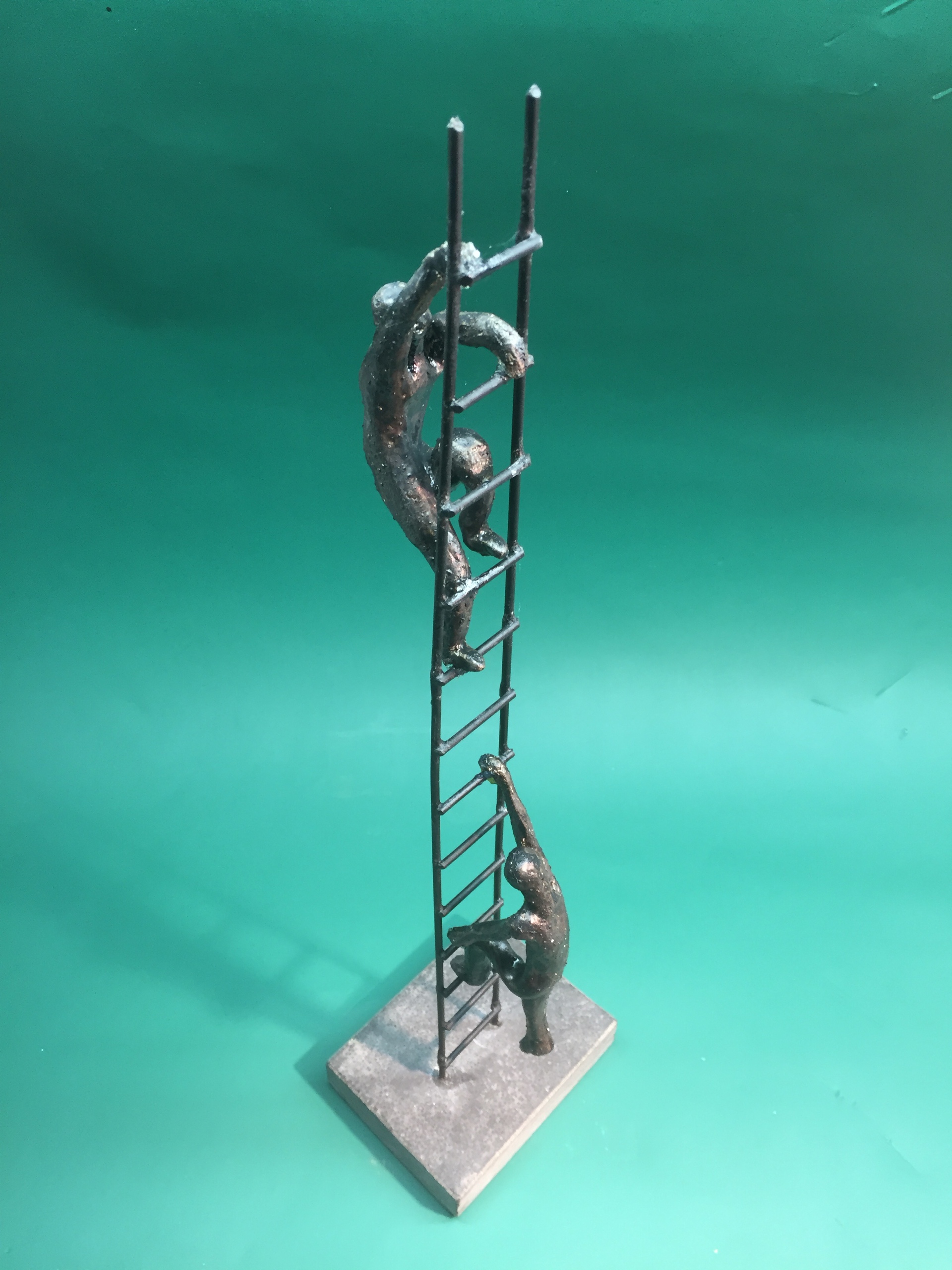 Twee Mensen Klimmen Op Ladder In Balans Naar De Top