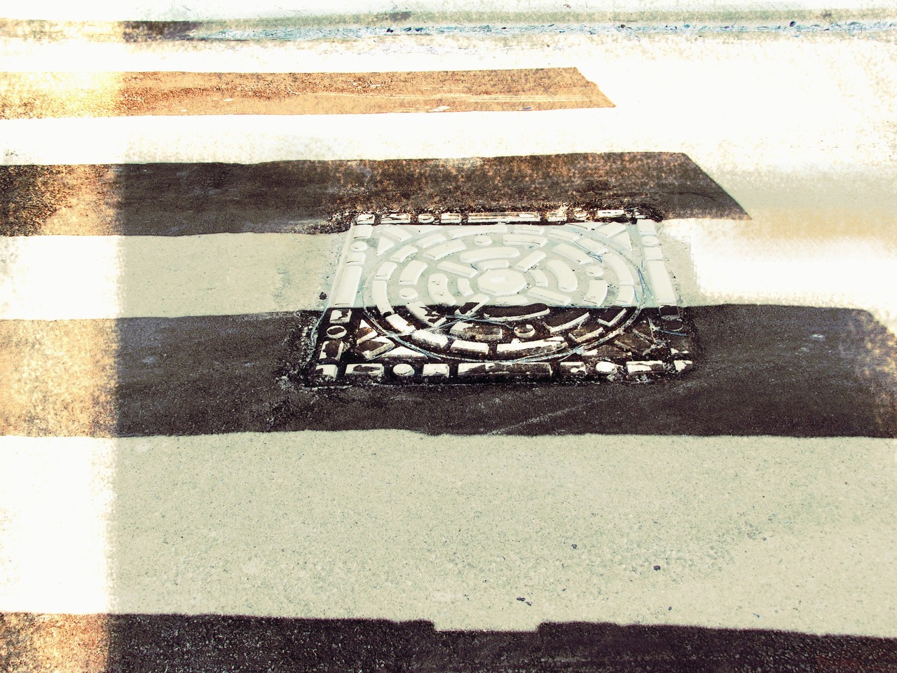 Manhole Cover Putdeksel Okergeel Bruin Zwart Wit Zebrapad