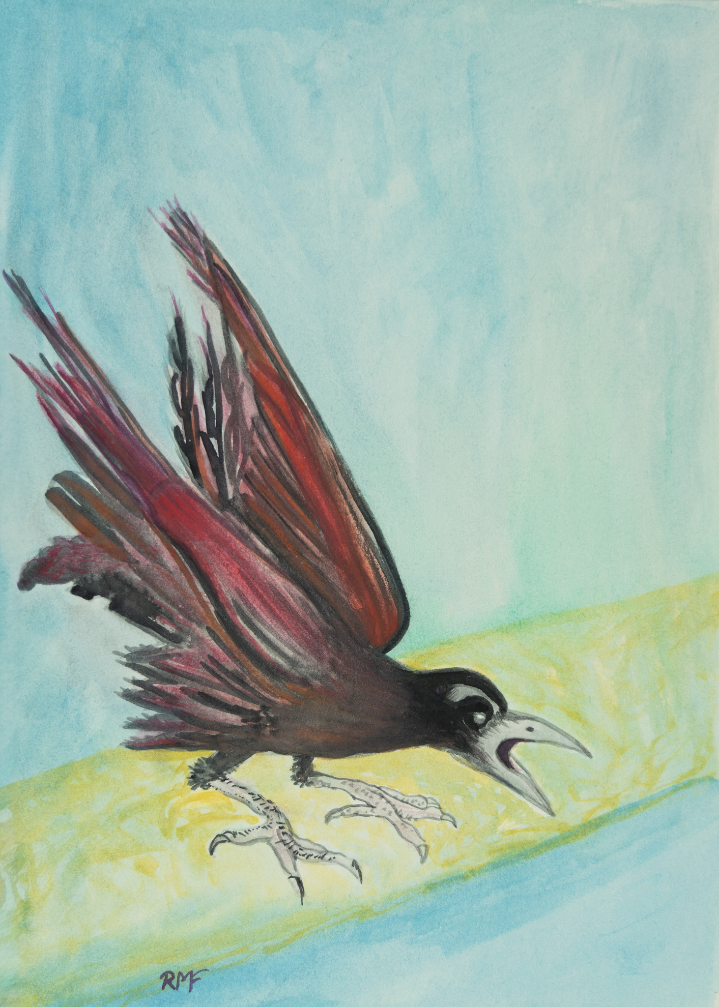 Kraai krast naar jou Hoge kwaliteit kunstprint op A3 of A4 of A5 fotopapier van dit werk, origineel is niet beschikbaar vanwege het beschilderen van voorkant en achterkant in een schetsboek.