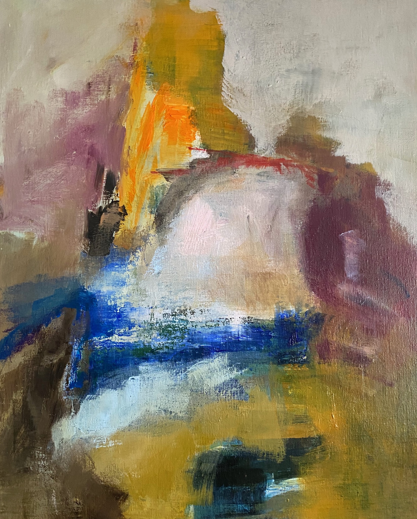 'Het landschap als vertrekpunt'. De natuur wil ik in al haar kleur, licht en donker, vormen en structuren weergeven. Mijn ontwikkeling blijft doorgaan, er is zoveel om naar te kijken en uit te drukken op het doek. Abstracter werken staat nu op de voorgrond: vlakken, kleuren, lijnen, compositie vormen tot een beeld, dat spreekt.