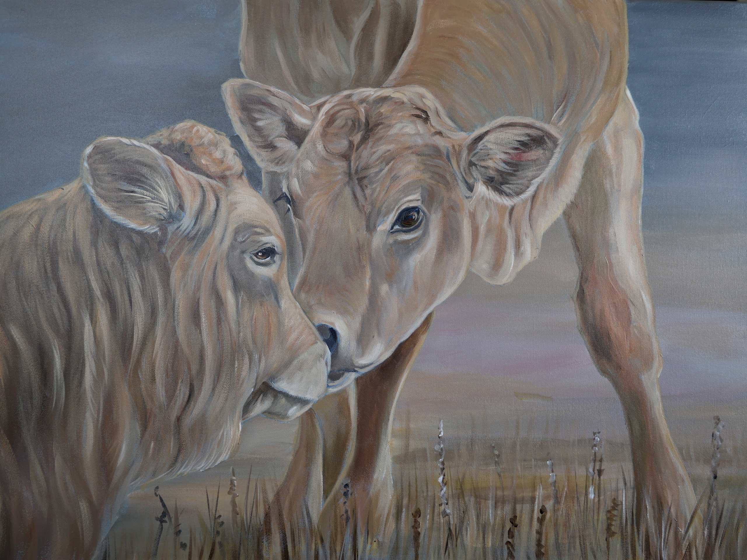 Kalf Kalveren Acrylverf Grijsblauw Beige