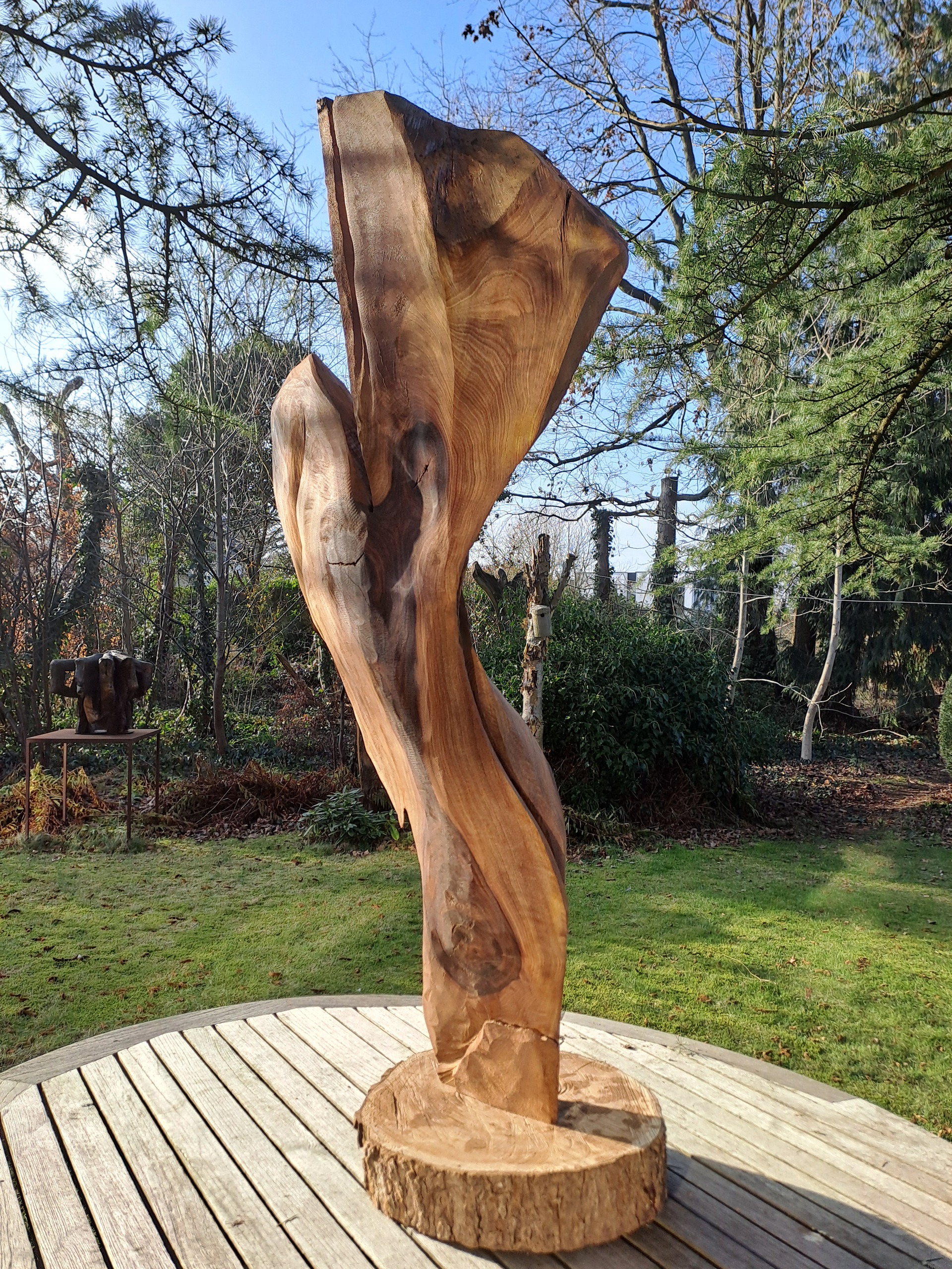 In notelaar. Een vogel? Ja, maar een die niet bestaat als vogel en ook zo nooit zal bestaan. De vorm van de stam besliste daar anders over. Kijk met een open blik, liefst langs alle kanten. Ga daarvoor naar www.vernissageshop.eu, daar moet dat lukken, of kom zelf kijken.