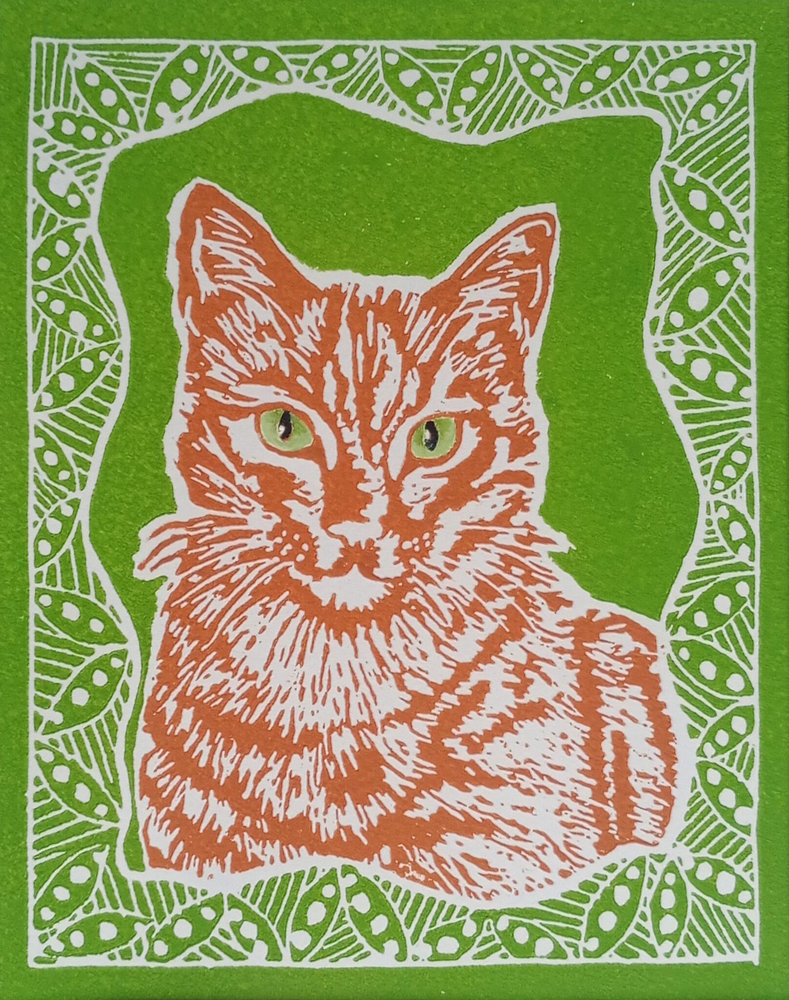 Kat Poes Oranje Cypers Portret Huisdier Omlijsting Groen Versiering Ornament