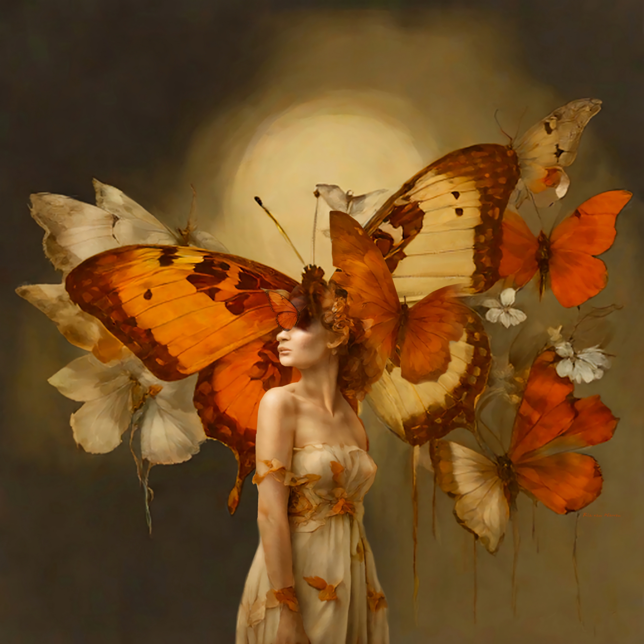 Het Levende Gewaad Ontpopt Uit De Droom Vlinders Vrouw Bruin Wit Oranje Groen