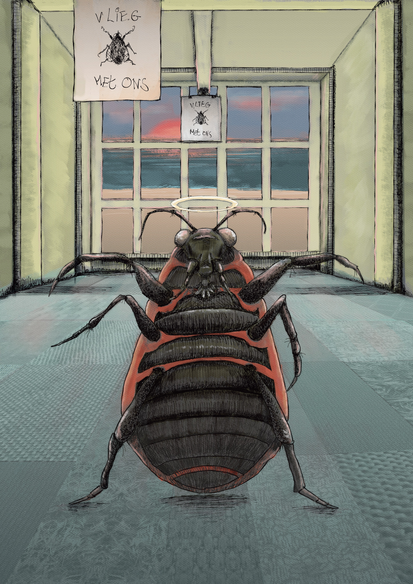 Sombere wolken pakten zich samen. De ruimte was een tijdcapsule. Toen was hij daar, Ruach, de opperwants, hij blies de ruimte levensadem in. Digitaal in krita, afdrukken kunnen op maat gemaakt worden