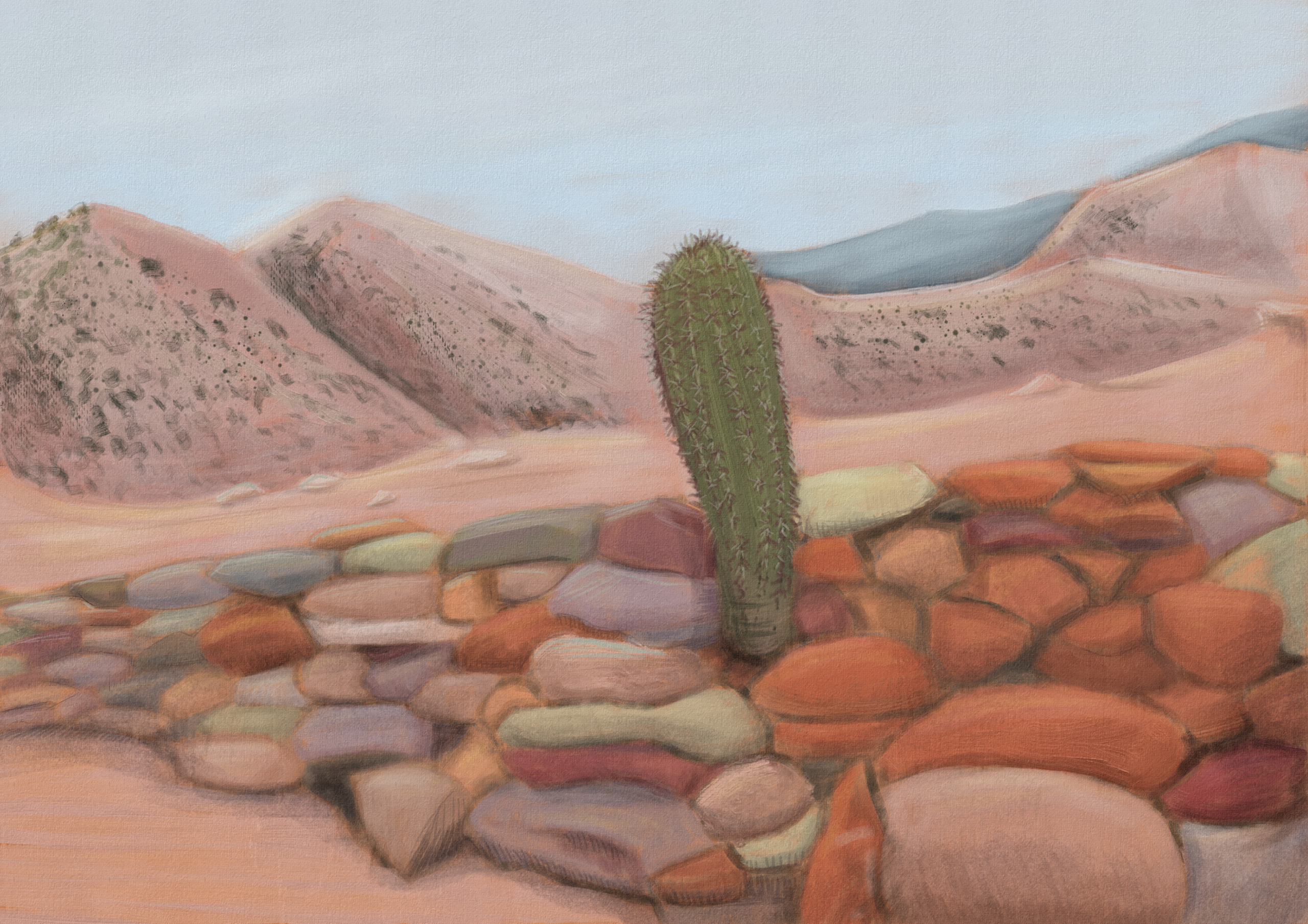 Een Echinopsis leucantha, groeiend op een muurtje Digitaal in krita