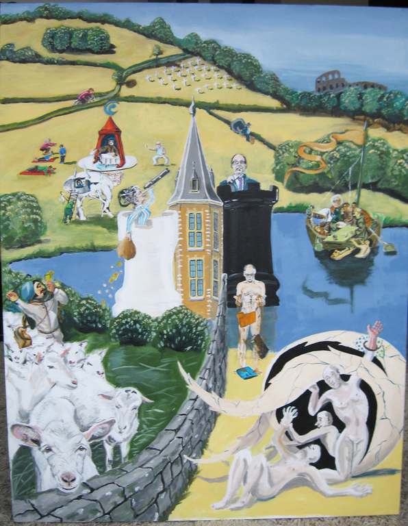 Jos van der Zee(1953) Begin 2007 gestart met acryl. De onderwerpen variëren sterk, maar het maken van portretten is favoriet. De grootste uitdaging ligt in het treffen van de juiste oogopslag. Door de Q-koorts (zie afbeelding) lukte het op een gegeven moment (2018) niet meer om regelmatig op grotere doeken te schilderen met acryl. Overgeschakeld naar portrettekenen met kleurpotloden. En dat bevalt heel goed.