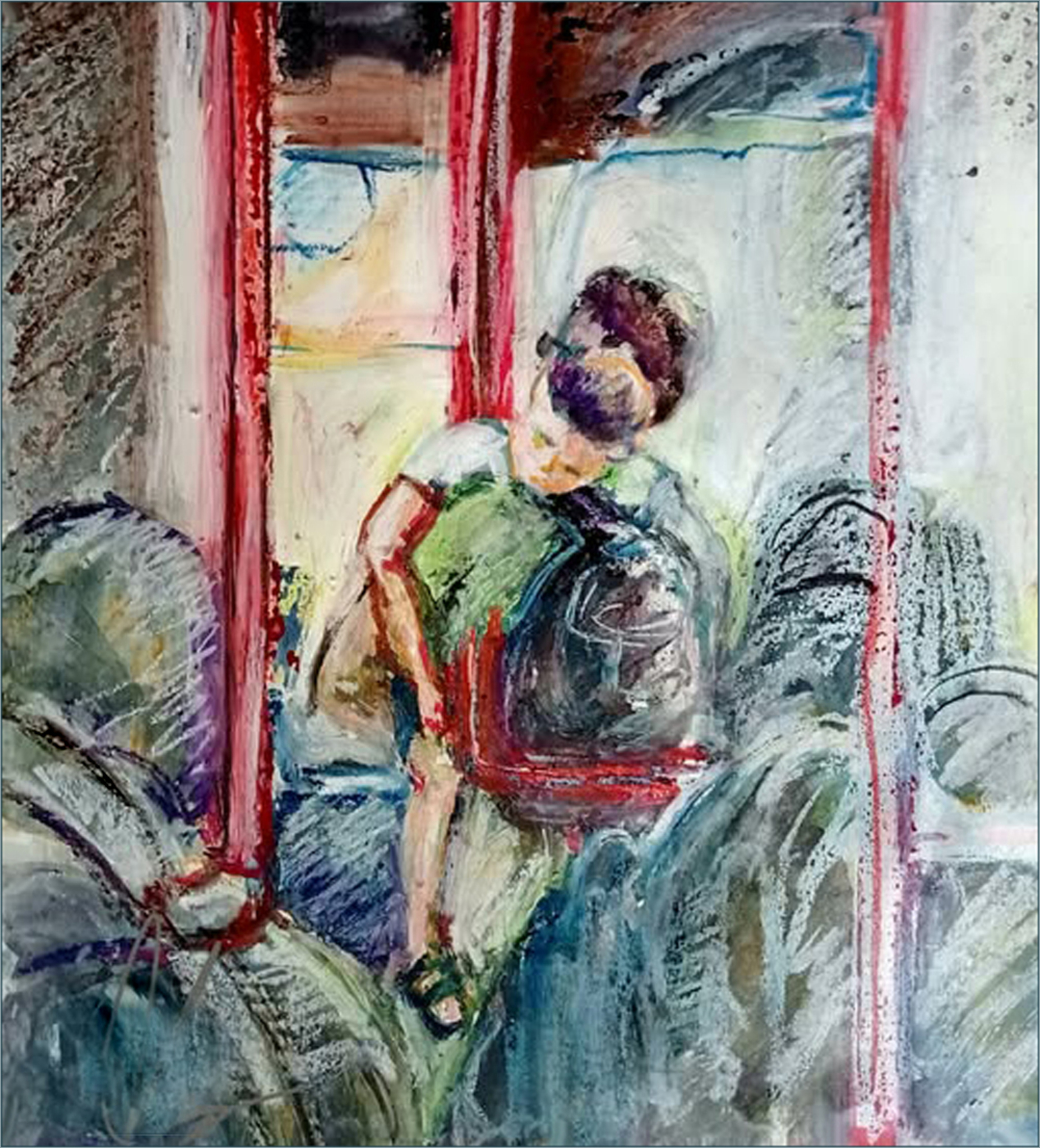 Bij verschillende bezoeken aan Antwerpen zijn diverse schilderijen en tekeningen gemaakt. Onder meer in de bussen en treinen. Vader en zoontje.