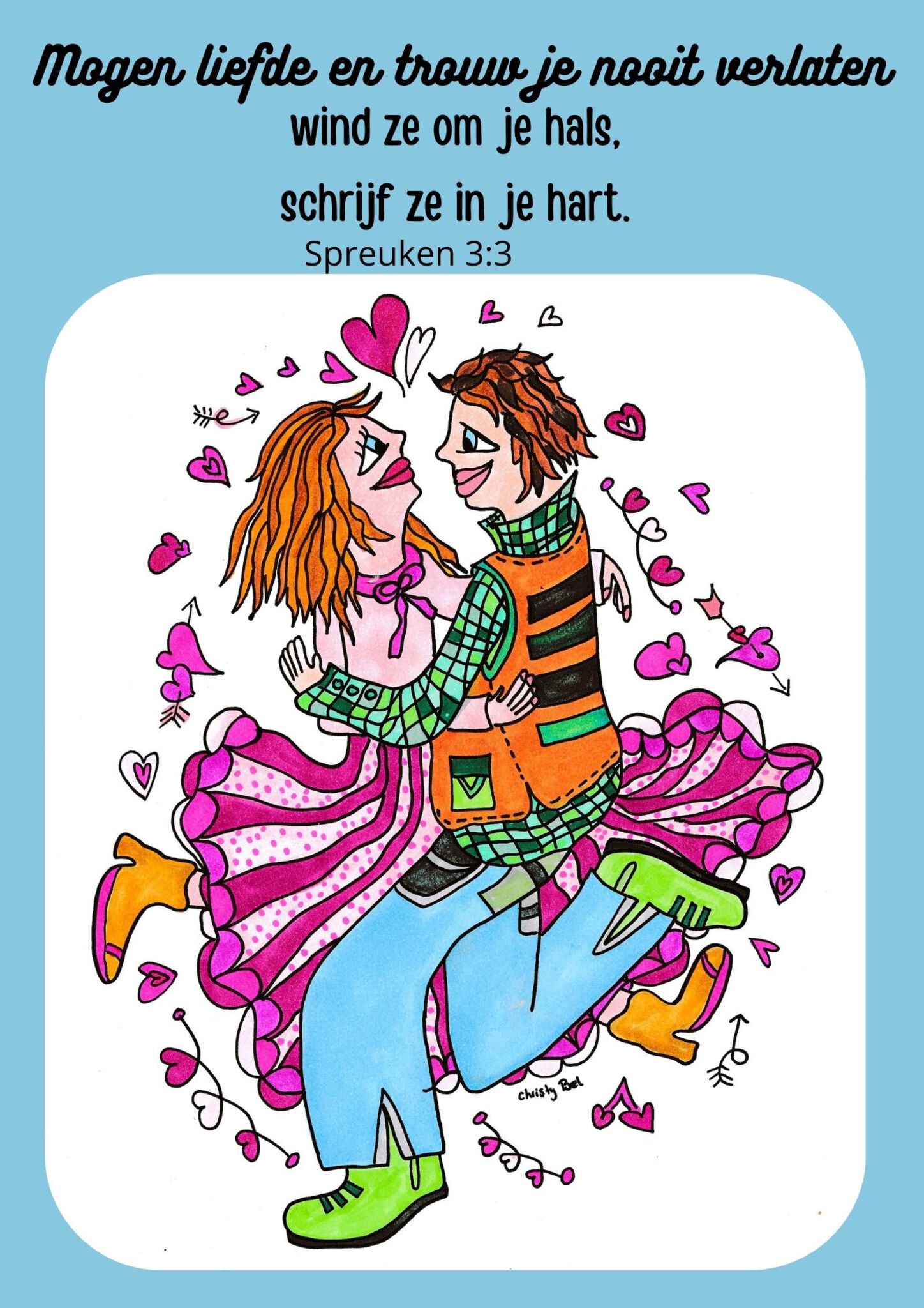 Hallo ik ben christy Bel Graag maak ik illustraties en kleurplaten met een Bijbeltekst. Mijn werk mag gebruikt worden om blij van te worden. ( niet commercieel ) christybel.illustraties@gmail.com