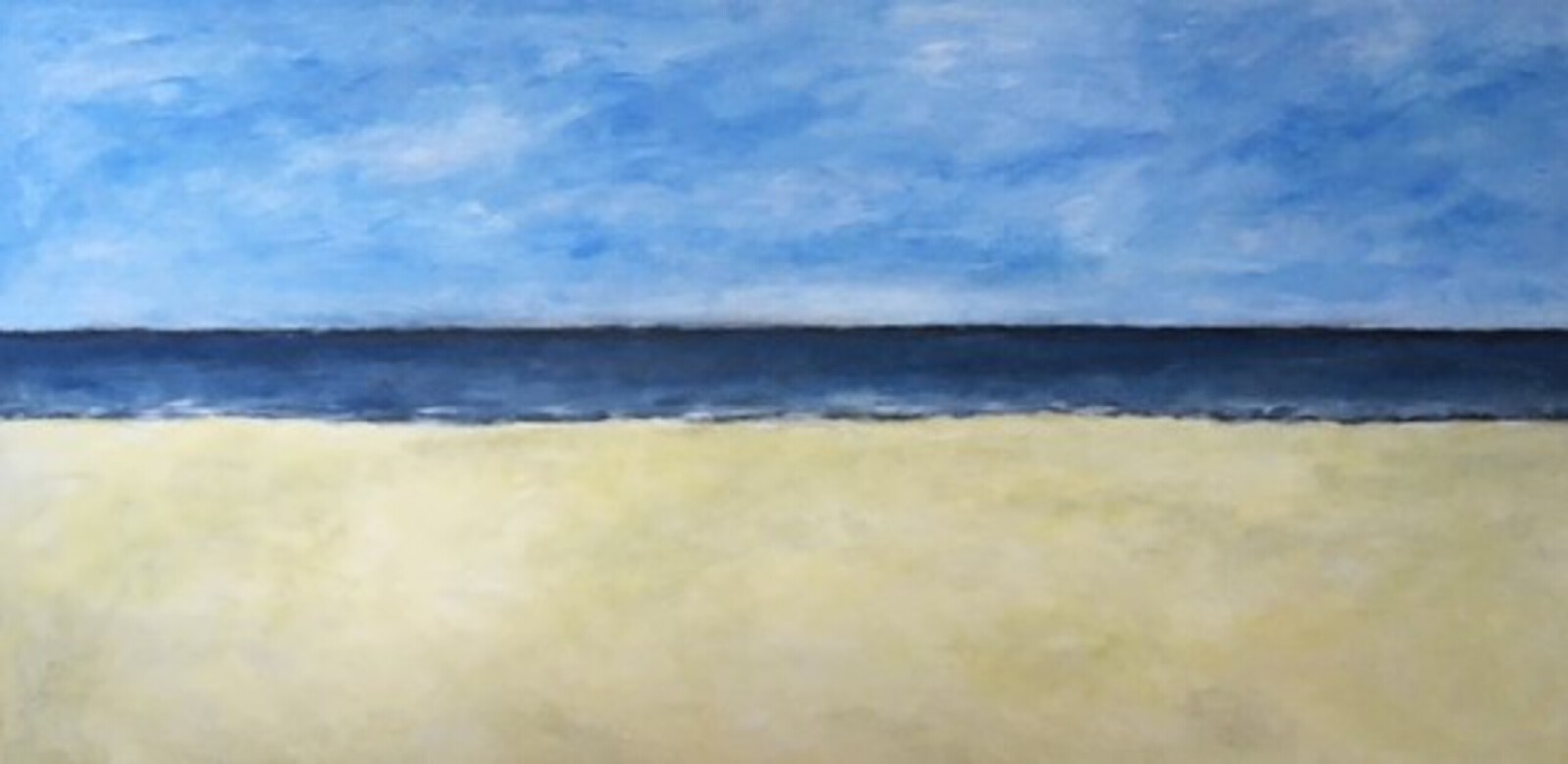 Bijzonder groot Texels werk. 90 x 180 x 5 cm. De lucht, de zee en het zand.