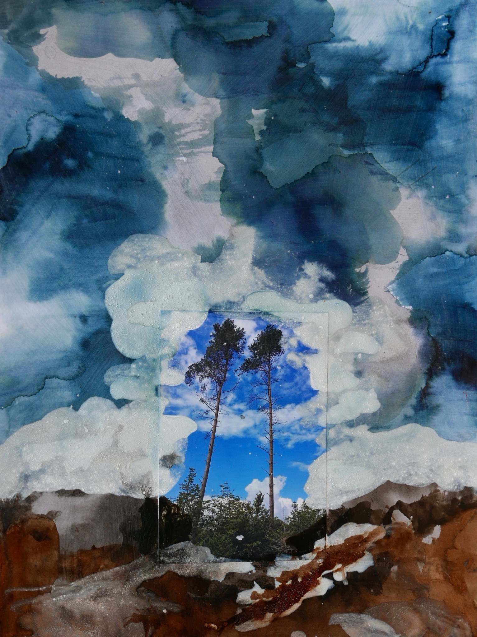 Mookerheide - natuurbegraafplaats - abstract - horizon - een foto als uitgangspunt - pigment en sumi-e op papier - vernis - 30x40 cm 2020 pigment gebonden met acrylaatbinder (en water)