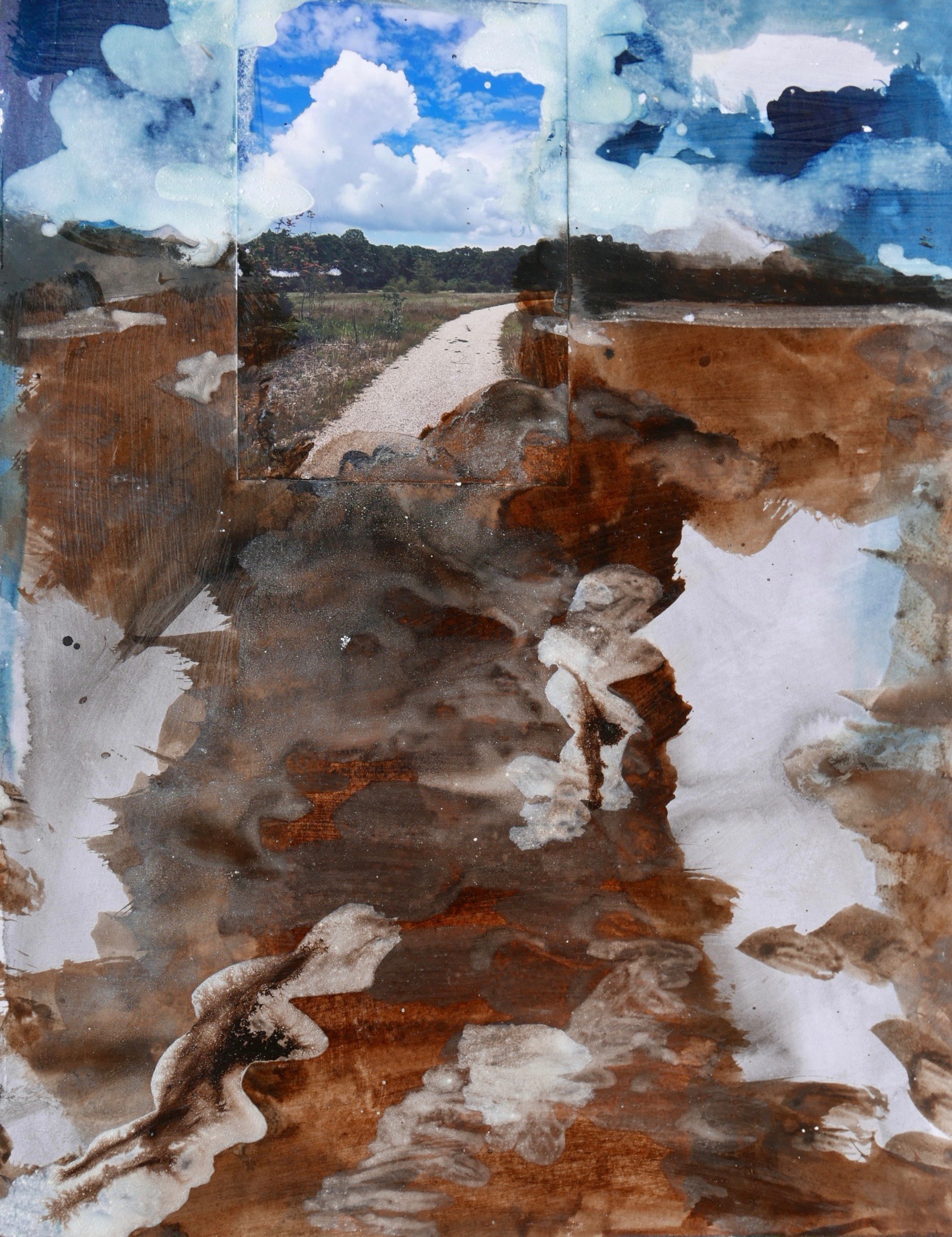 Mookerheide - natuurbegraafplaats - abstract - horizon - een foto als uitgangspunt - pigment en sumi-e op papier - vernis - 30x40 cm 2020 pigment gebonden met acrylaatbinder (en water)