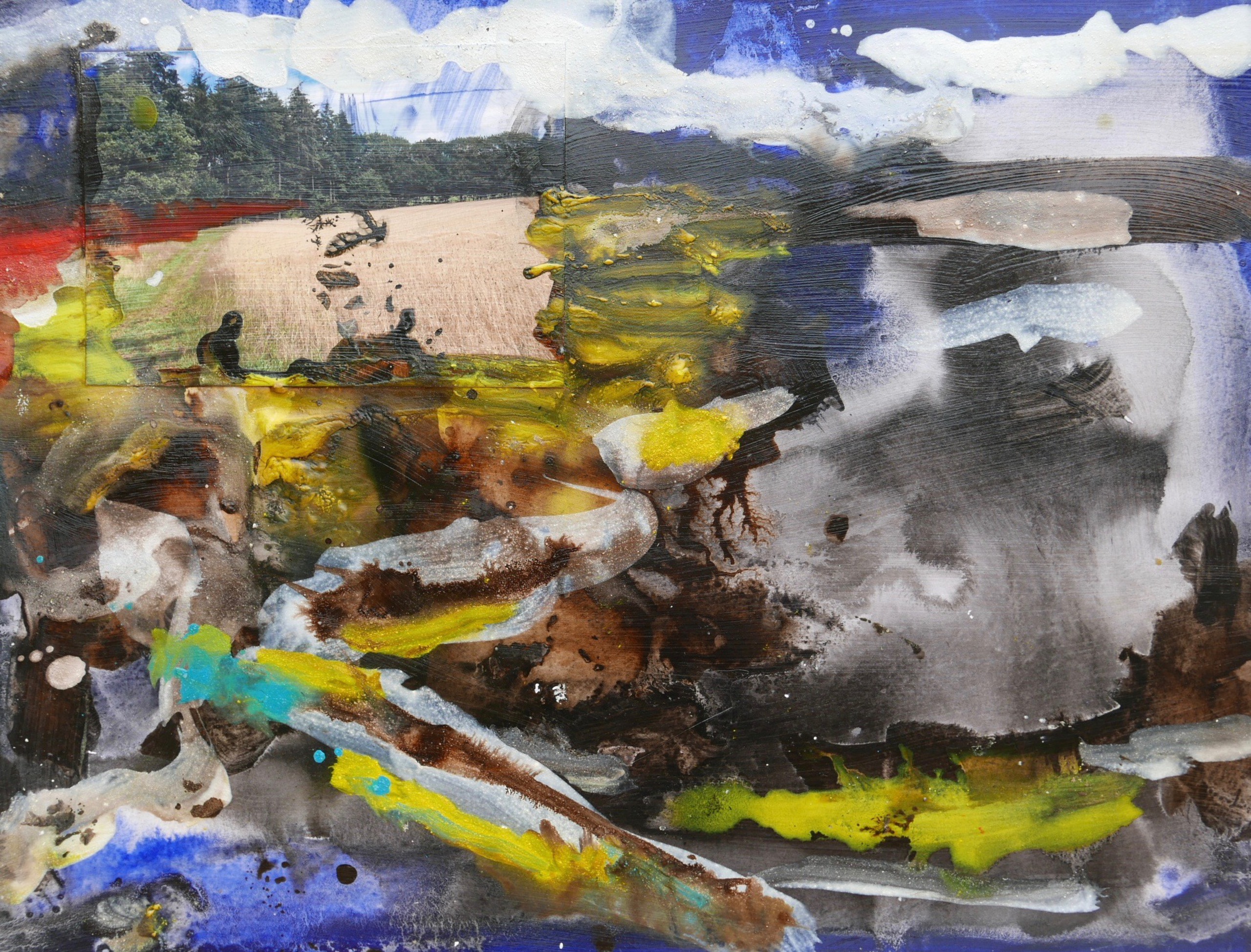 Mookerheide - abstract - horizon - een foto als uitgangspunt - pigment en sumi-e op papier - vernis - 30x40 cm 2020 - pigment gebonden met acrylaatbinder (en water)