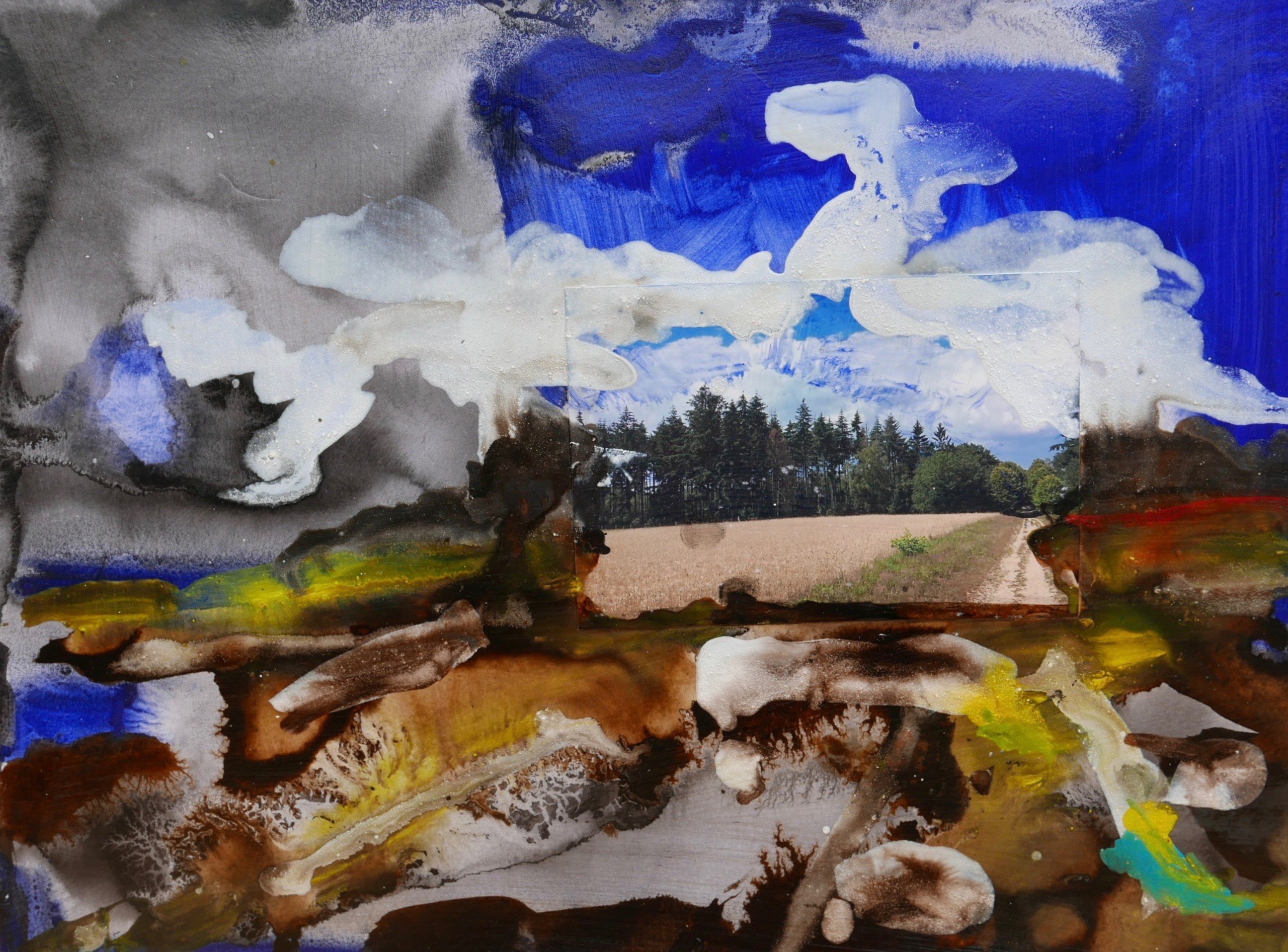 Mookerheide - abstract - horizon - een foto als uitgangspunt - pigment en sumi-e op papier - vernis - 30x40 cm 2020 - pigment gebonden met acrylaatbinder (en water)