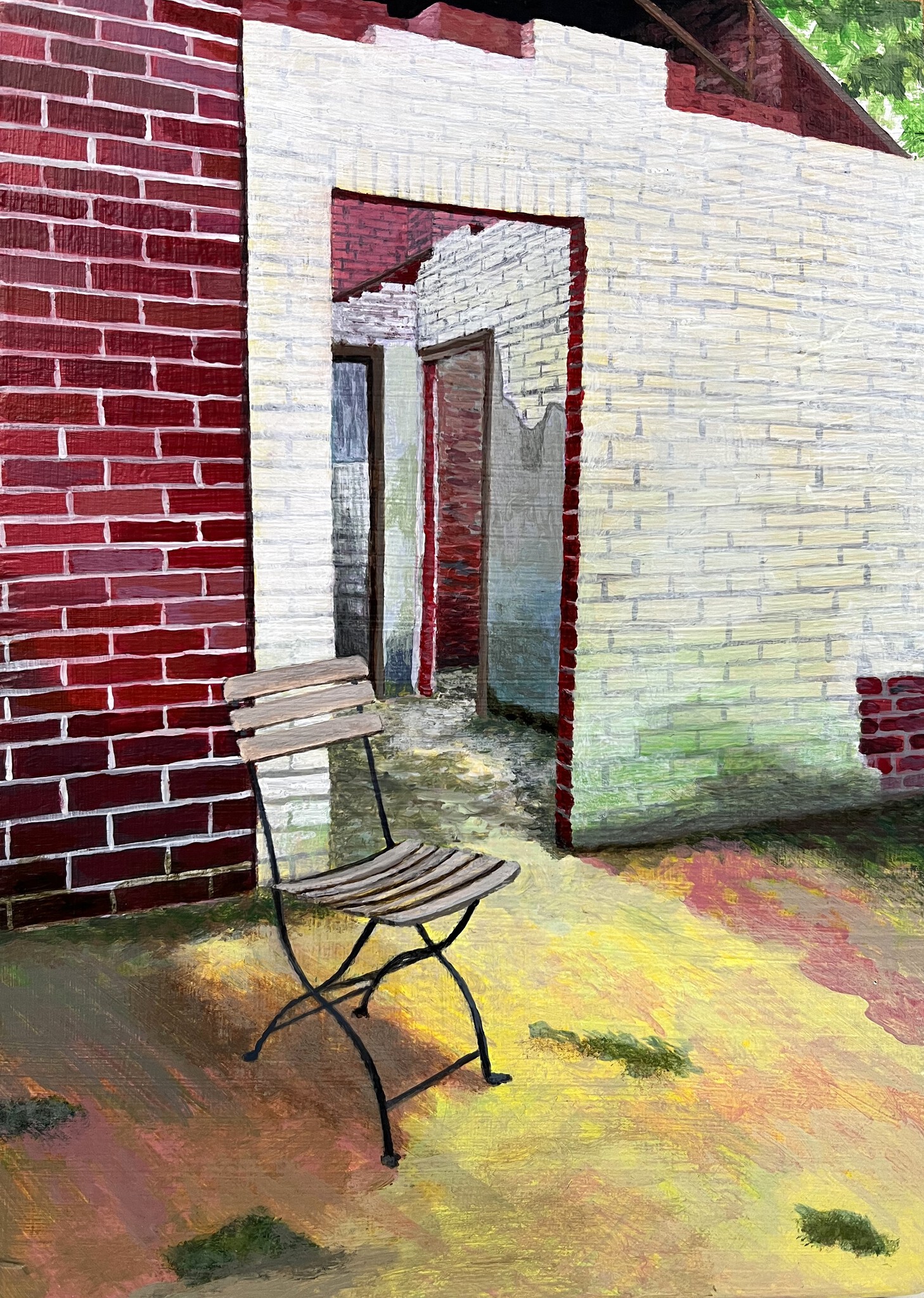 Een indruk van een verlaten boerderij in het Oldambt. Acryl op gerecycled hout, gesigneerd op de achterkant. Een geselecteerd aantal werken, waaronder dit, is nu extra aantrekkelijk geprijsd, om ruimte te maken in mijn atelier voor nieuwe dingen.