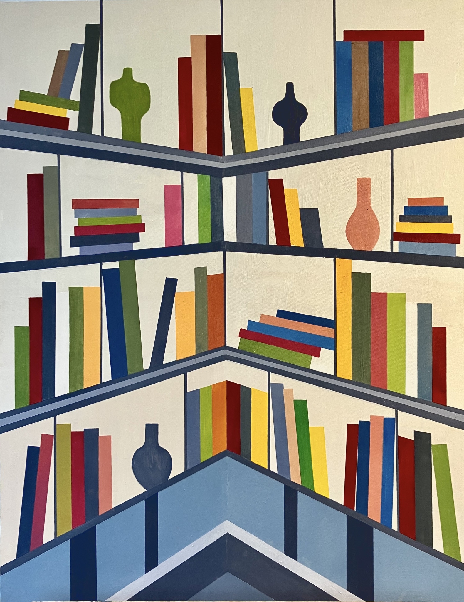 Wit Rood Geel Zwart Blauw Groen Olieverf Doek Abstraherend Boeken Gebroken Vazen Boekenkast