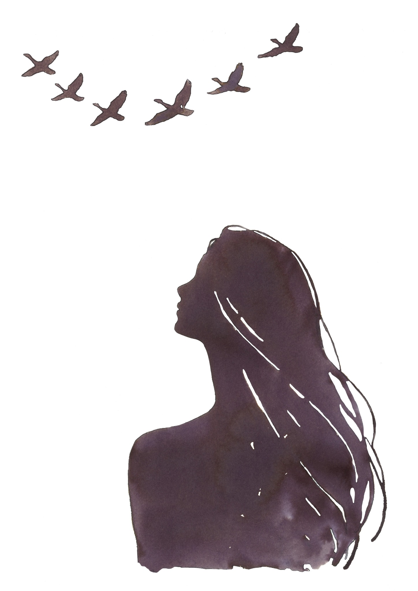 Abstract Vrouw Art Handgemaakt Tekening Kunst Natuur Women Uniek Inkt Vogels Cadeau Minimalisme Bijzonder Print Kunstwerk Natuurlijke Silhouet Silhouetten Wanddecoratie Fine Betaalbare Minimalistische Muurdecoratie Zeewater