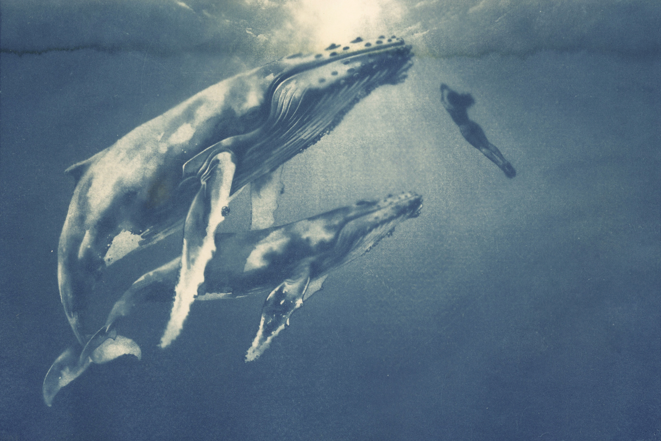 Vrouwen Vrouw Wildlife Art Handgemaakt Women Grafiek Print Oceaan Ocean Zeedieren Vertrouwen Geborgenheid Mixedmedia Whale Walvissen Walvis Minimalistische Natuurkunst Zeewater Seawater Cyanotype Marinelife Cyanotypes Whales