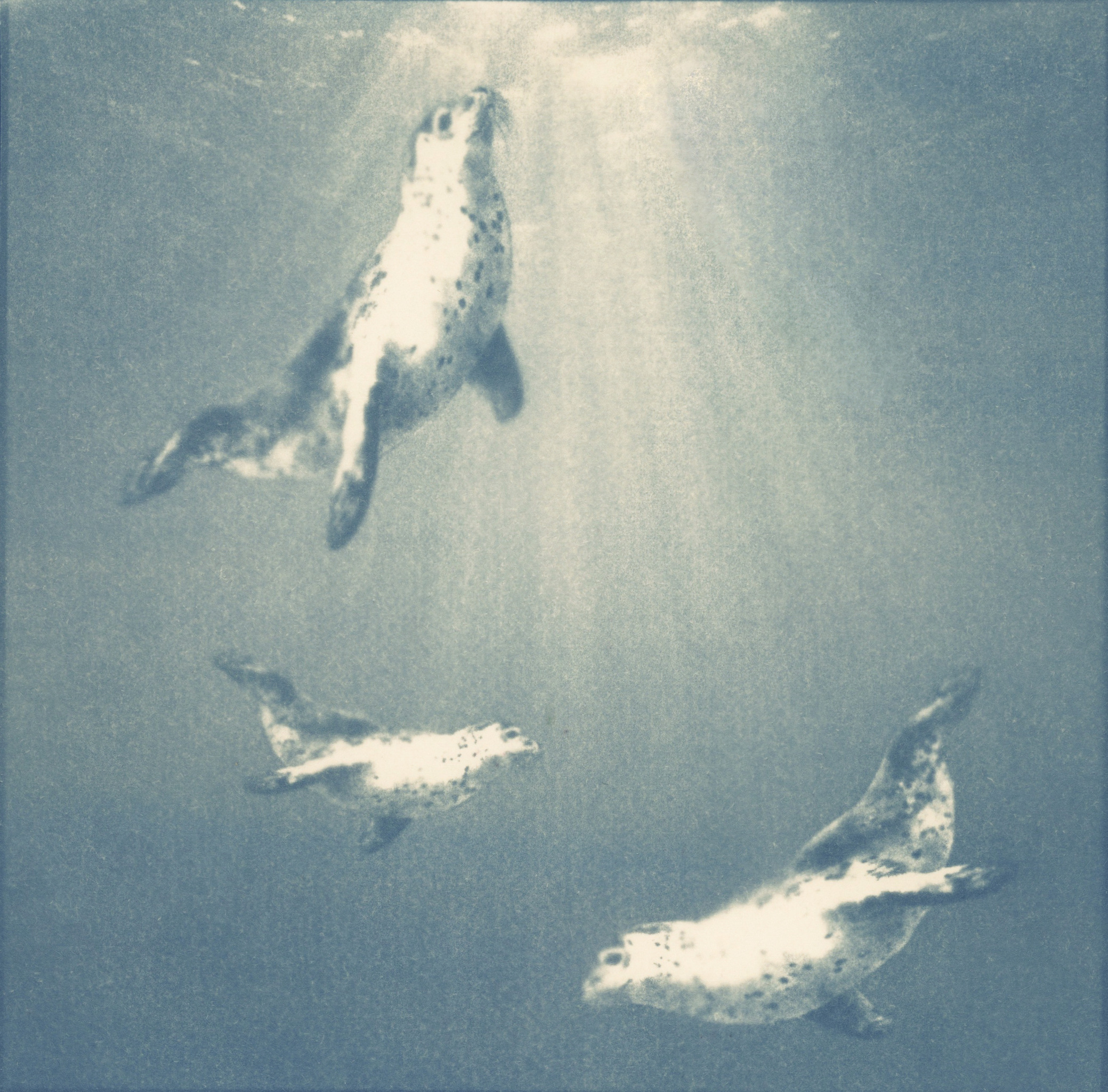 Wildlife Mixedmedia Handgemaakt Marinelife Print Kunstwerk Oceaan Ocean Zeedieren Vertrouwen Fineart Zeehond Minimalistische Zeehonden Natuurkunst Zeewater Cyanotype Seawater Seal Seals