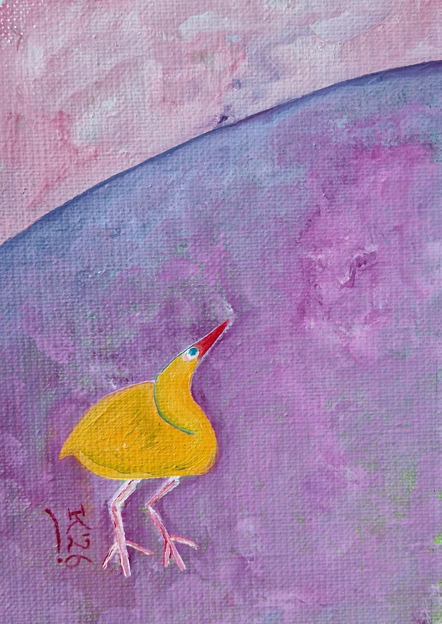 Olieverf op linnen, geplakt op board, in wit lijstje, afbeelding zelf ongeveer 15 bij 10 cm, met lijstje 17 bij 12. Vanaf half mei 2026 te koop voor 75 euro. De prijs is zonder verzendkosten. Als je je aanmeldt voor mijn maandelijkse gratis nieuwsbrief - zie links, onder communicatie - ontvang je bij aanschaf 10 % korting. Ook te bestellen als kunstkaart, met je eigen tekst erop, zie hierboven. Oil paint on linen, mounted on board, in a white frame; the image itself is approximately 15 by 10 cm, with the frame 17 by 12. Available for purchase from mid-May 2026 for 75 euros. The price excludes shipping costs. If you sign up for my free monthly newsletter - see lunder communication - you will receive a 10% discount on your purchase. Also available to order as an art card with your own text on it; see above.