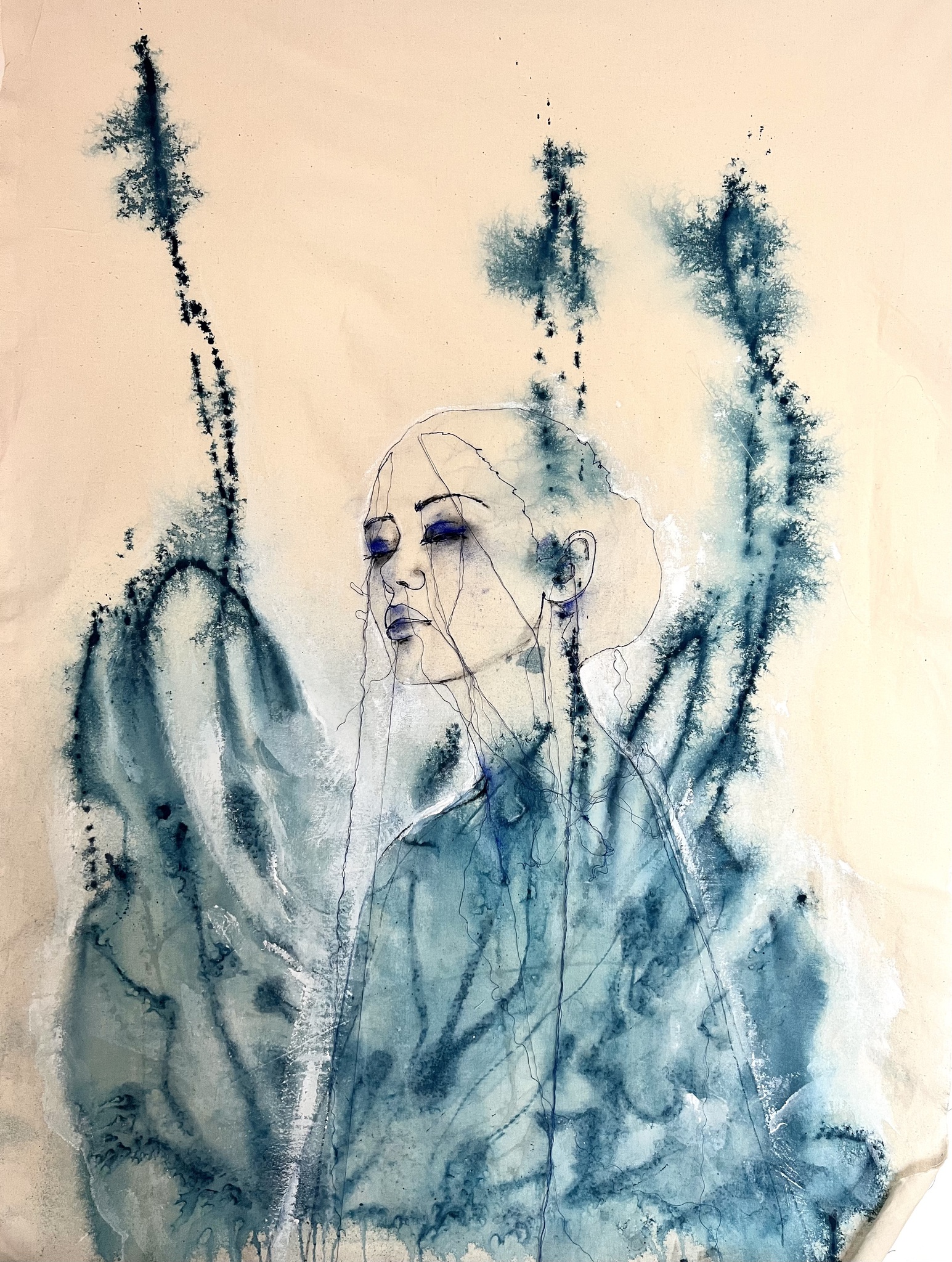 Afgestudeerd Monumentale Vormgeving aan de Academie Beeldende Kunsten Maastricht. (Maastricht Institute of Arts) Vrouwelijke figuren, sensualiteit, kracht en kwetsbaarheid in zwarte draden.
