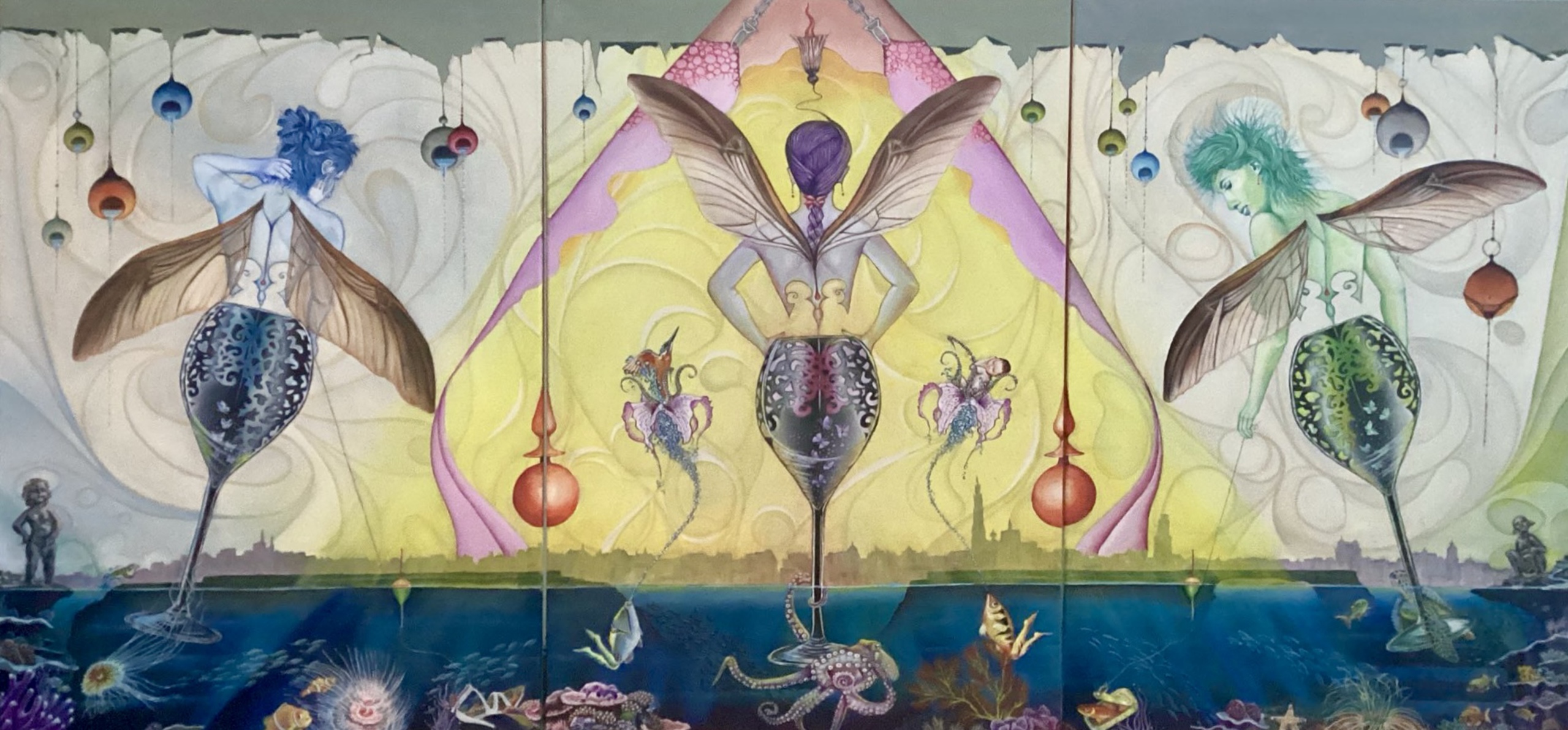 Vrouwen Zee Vissen Wijnglas Erotisch Octopus Zeeplant