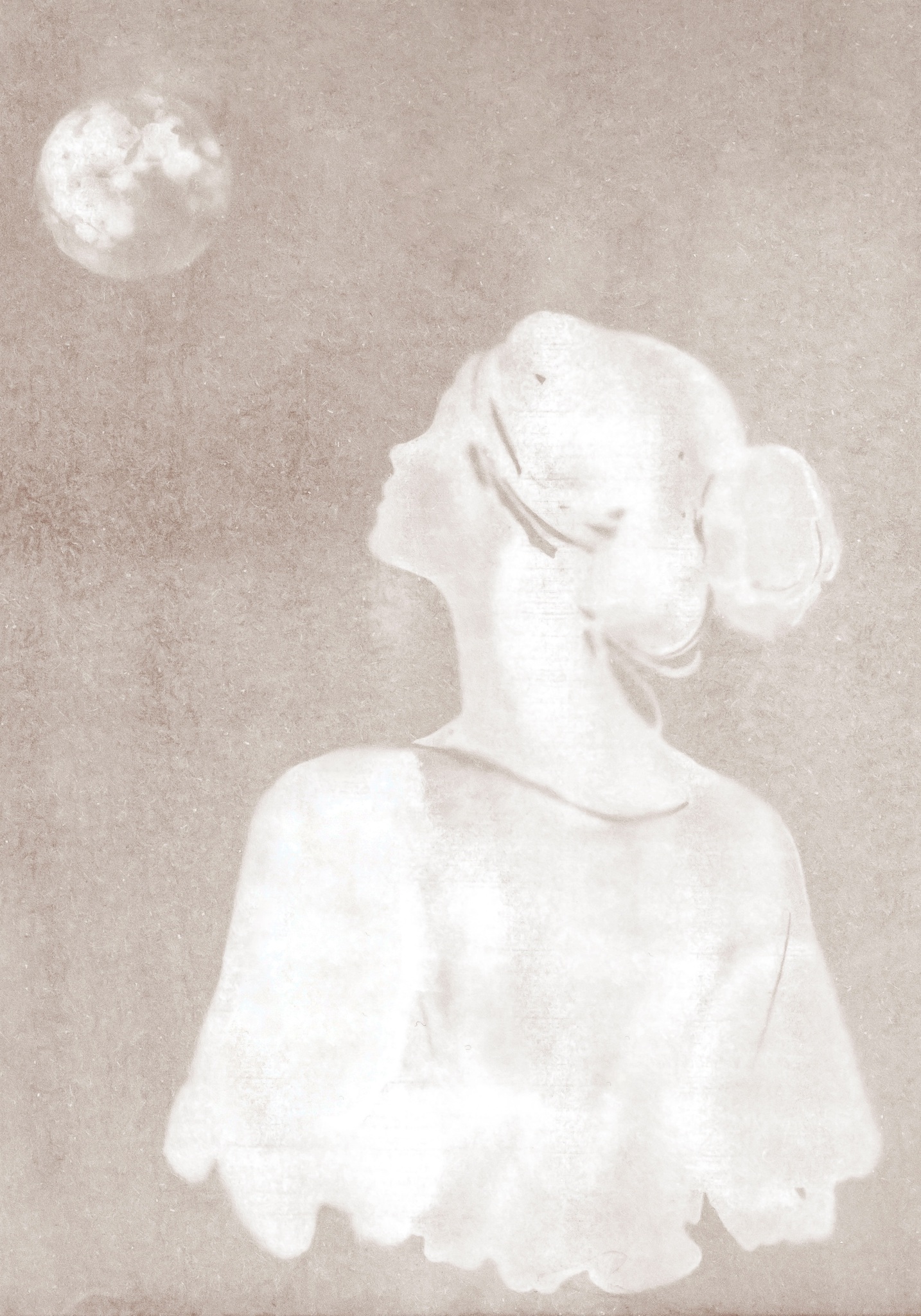 Vrouwen Vrouw Art Maan Mixedmedia Handgemaakt Women Grafiek Girl Moon Print Fineart Minimalistische Maanlicht Moonlight Zeewater Getij Cyanotype Seawater