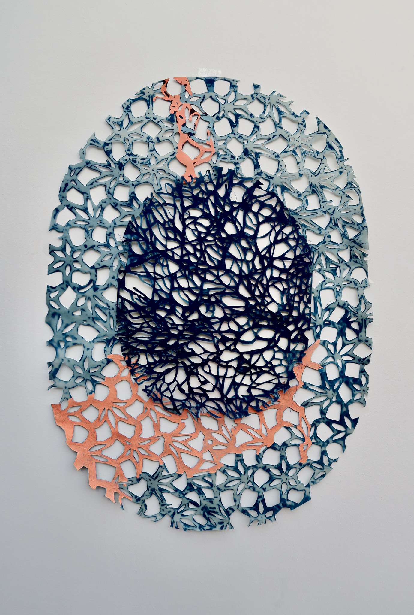 Uitgesneden Reliëf Blauw Roze Wit Mixed Media