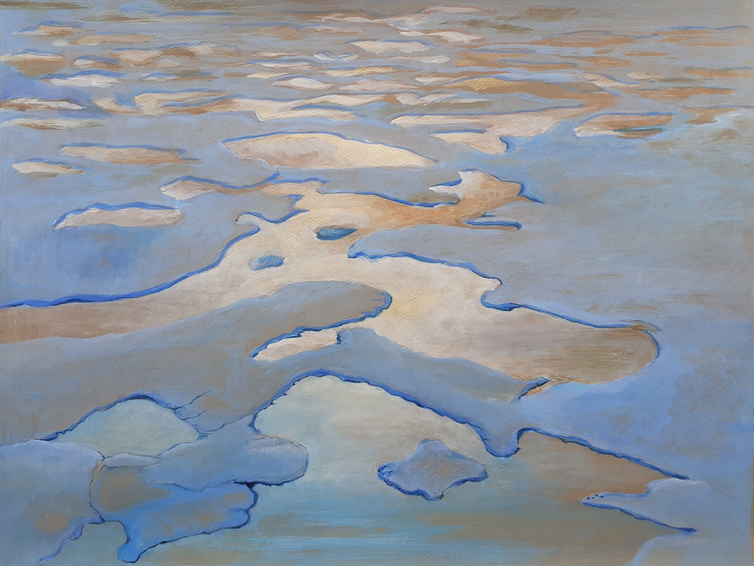Smeltend ijs waarop de ondergaande zon een gouden gloed legt