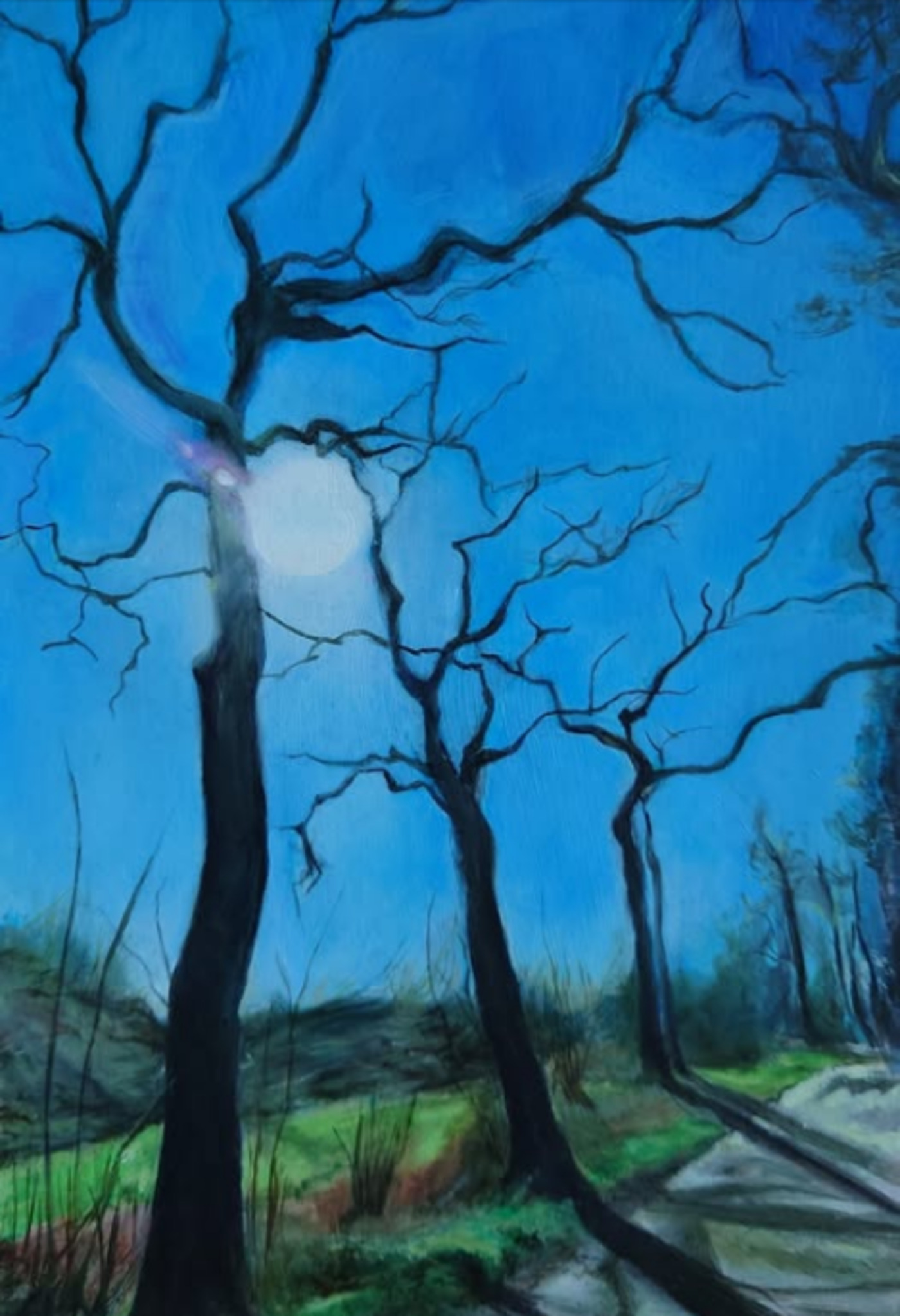 Blauw Natuur Olieverf Zon