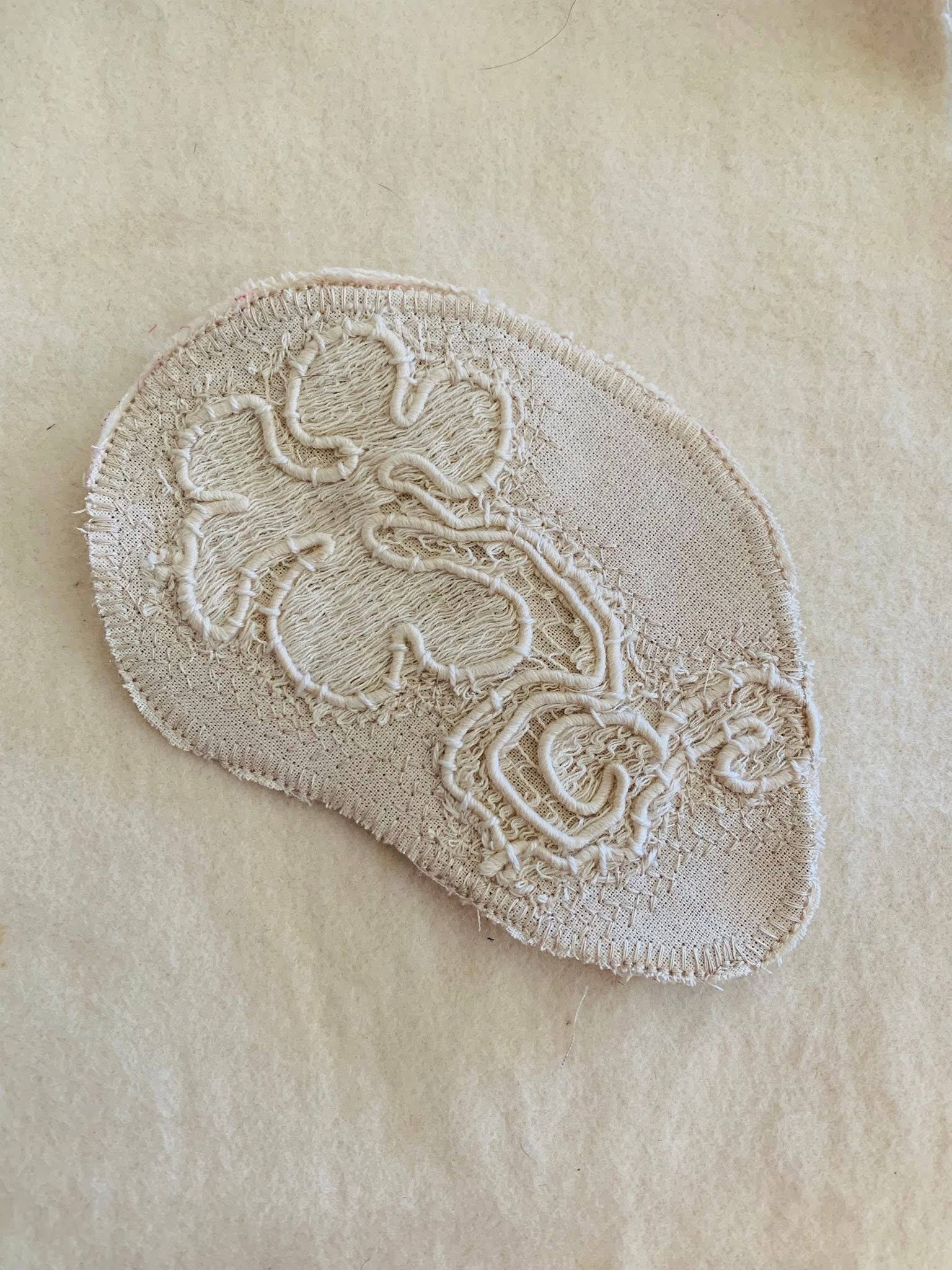Wit Textiel Broche Healing Wearable Art Object Ike