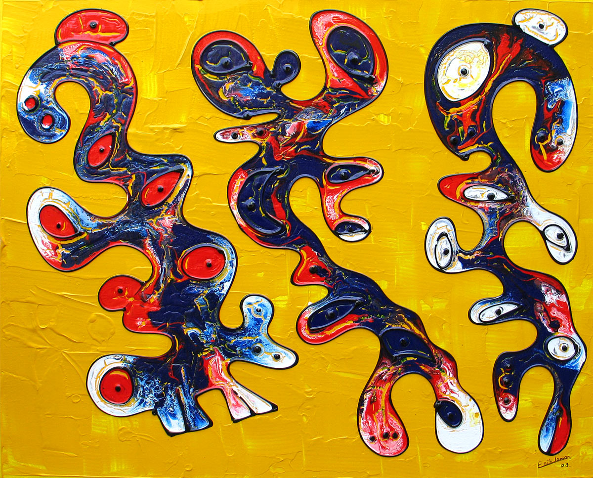 Modern kleurrijk schilderij van kunstenaar Erik Loman. Acryl op linnen, 100x80cm, 2008.