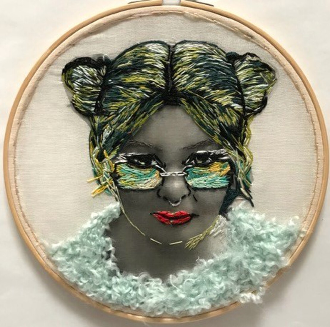 Geel Groen Mixed Media Zelfportret Borduurwerk Garen