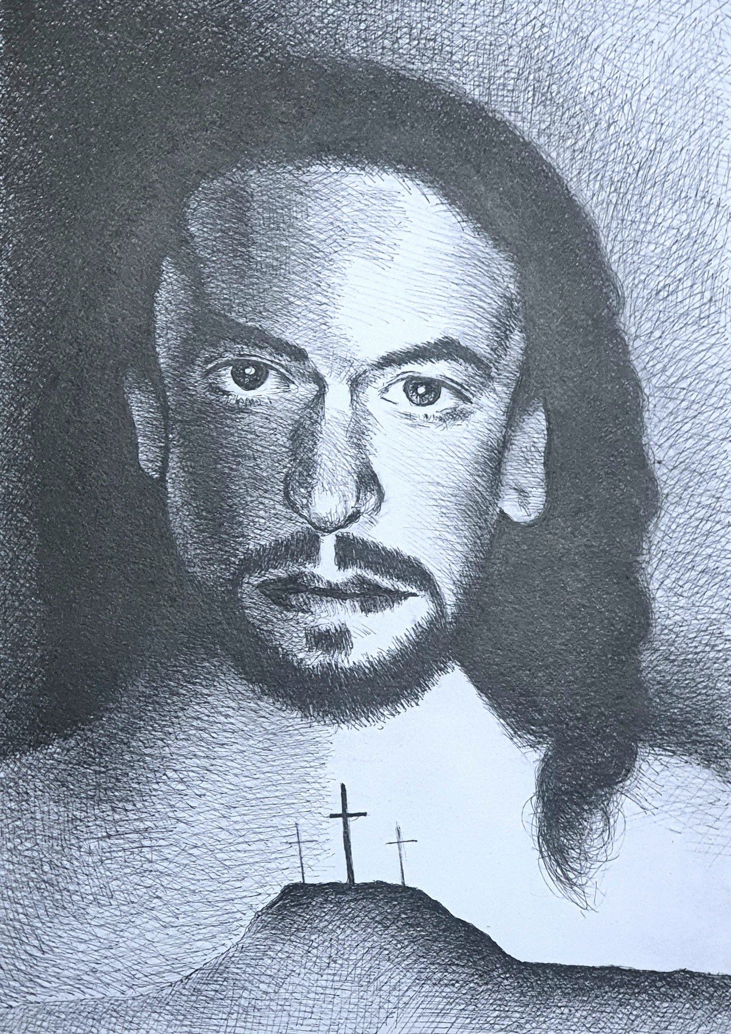 Jesus Christus was als mens op aarde gekomen, dus hij was "mens" met zijn zijn goede en slechte kanten. Hij was niet volmaakt.. dit wou ik weergeven in deze eigen interpretatie van Jesus Christus.