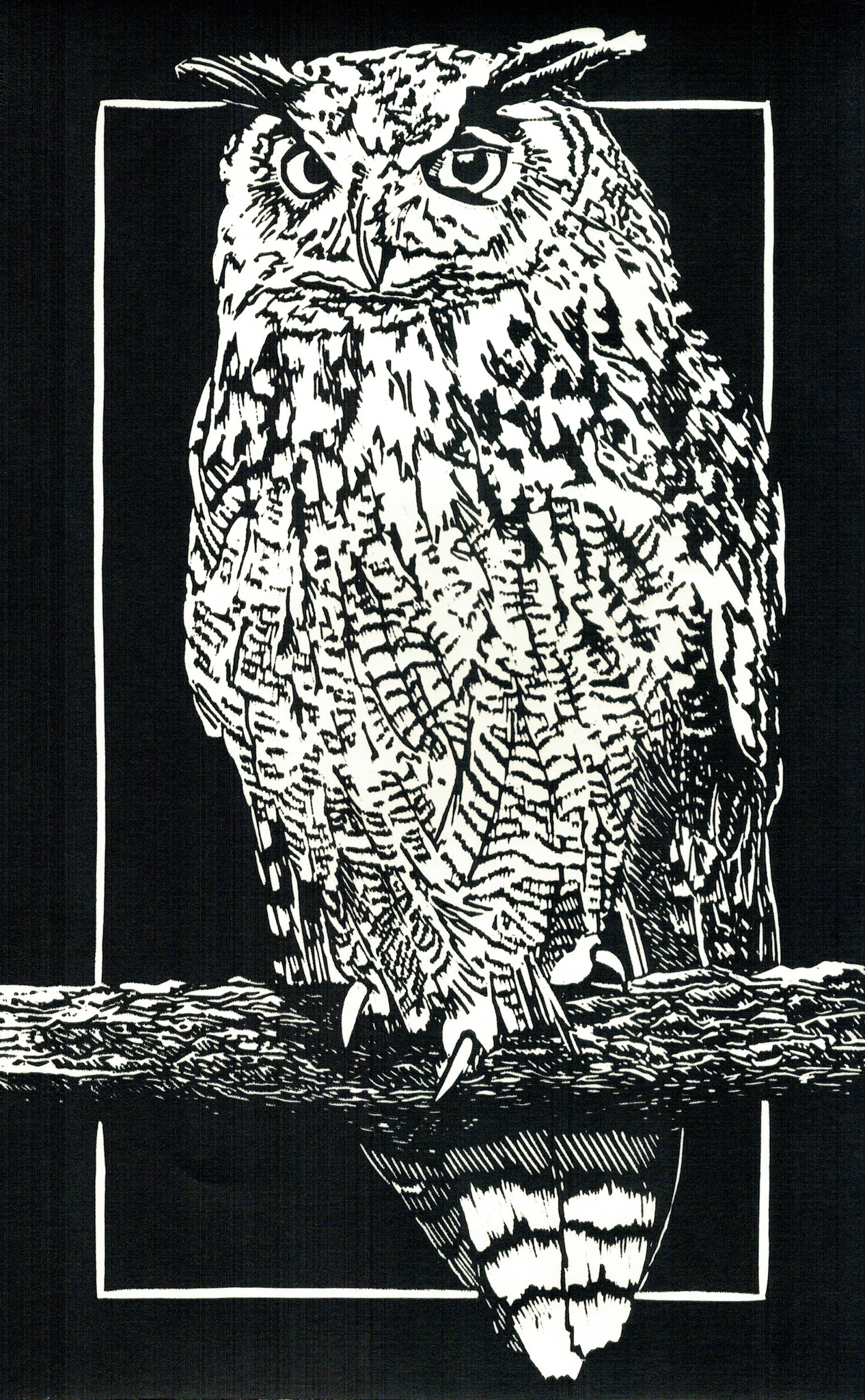 Wit Zwart Uil Realistisch Linosnede