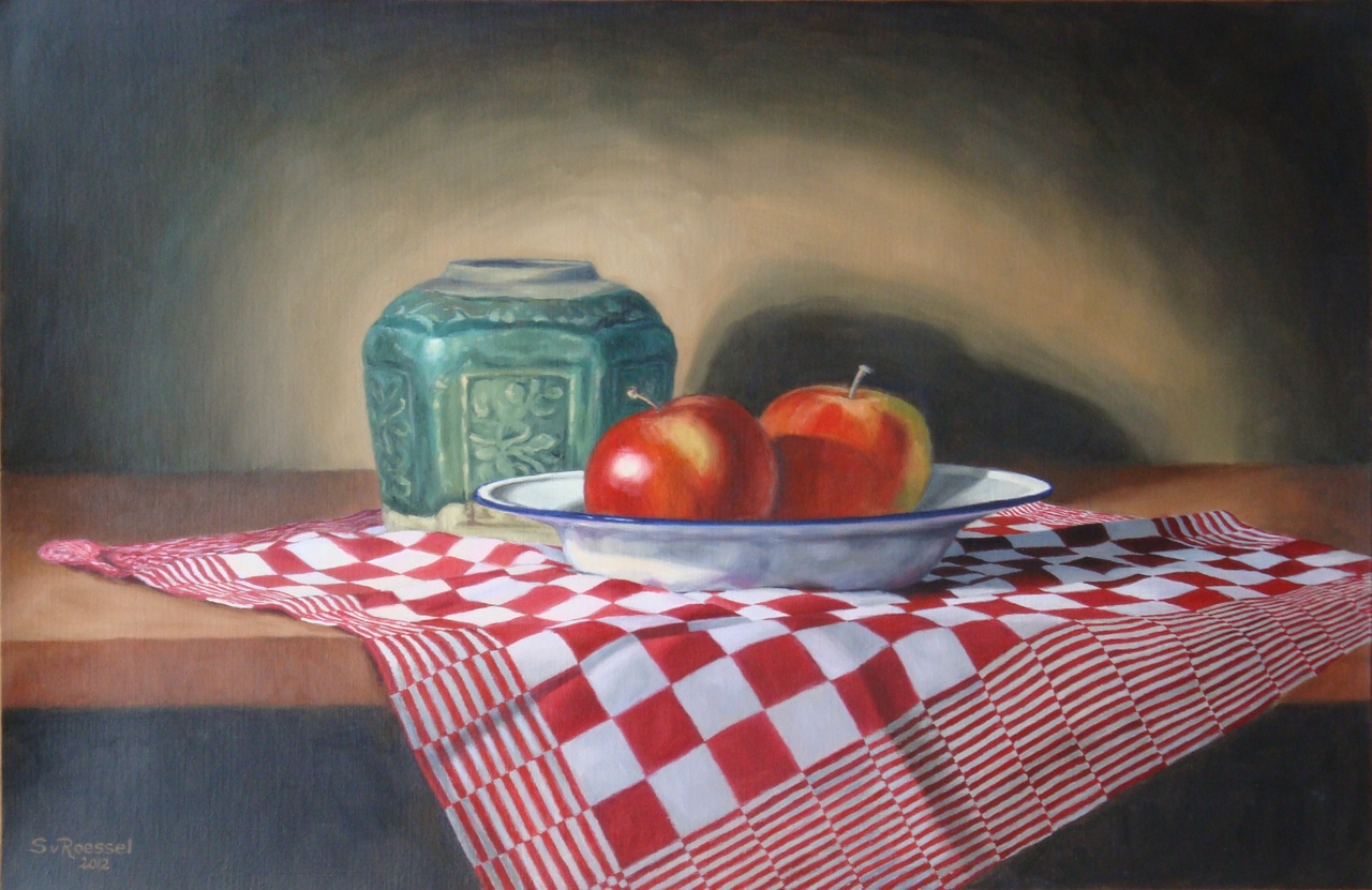 Figuratieve schilderijen, aquarellen en (pen)tekeningen. Stillevens, landschappen, model/portret.