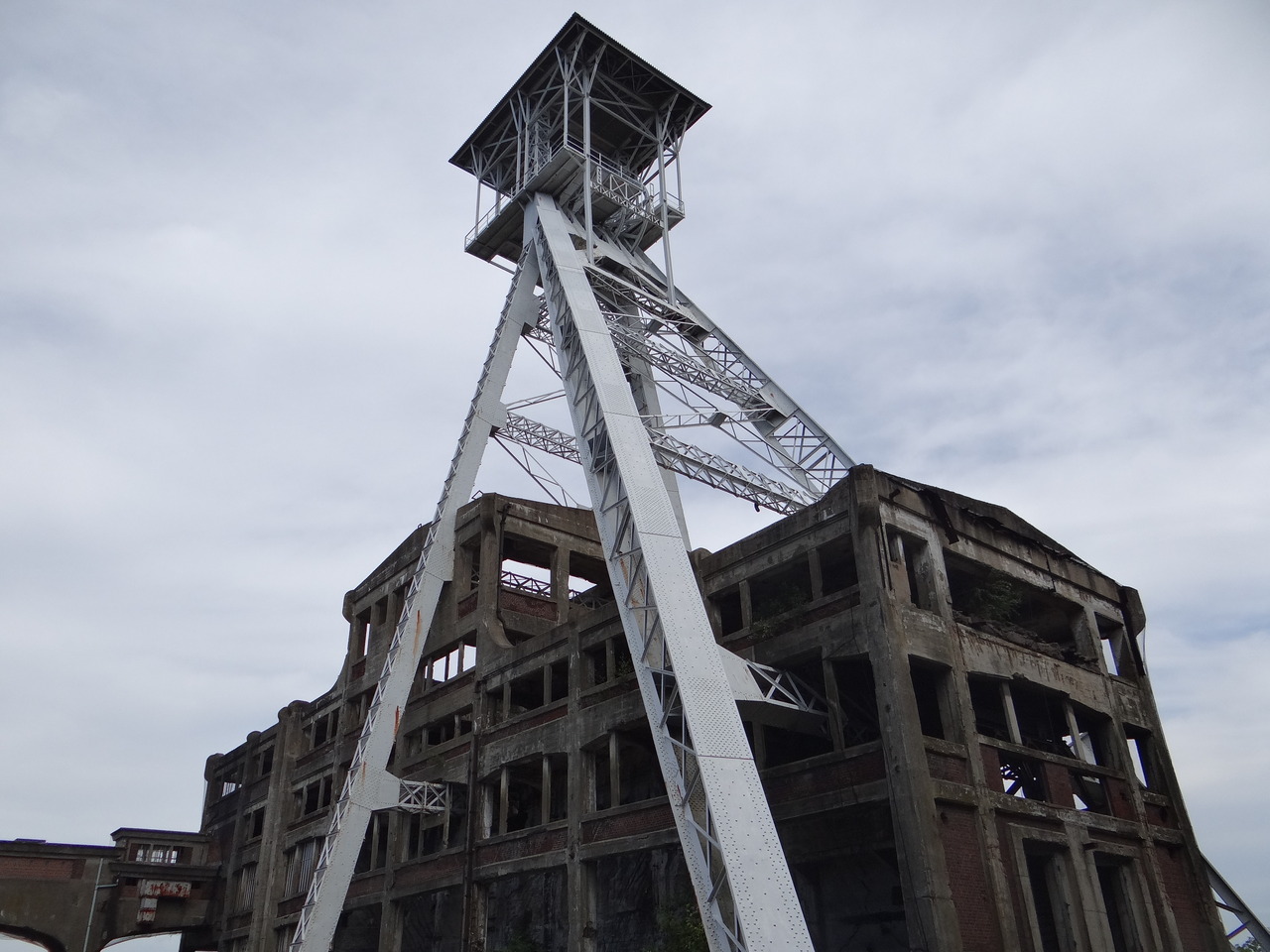 Genk: oude mijn: Het gebouw boven de mijnschacht dat de lift bediende