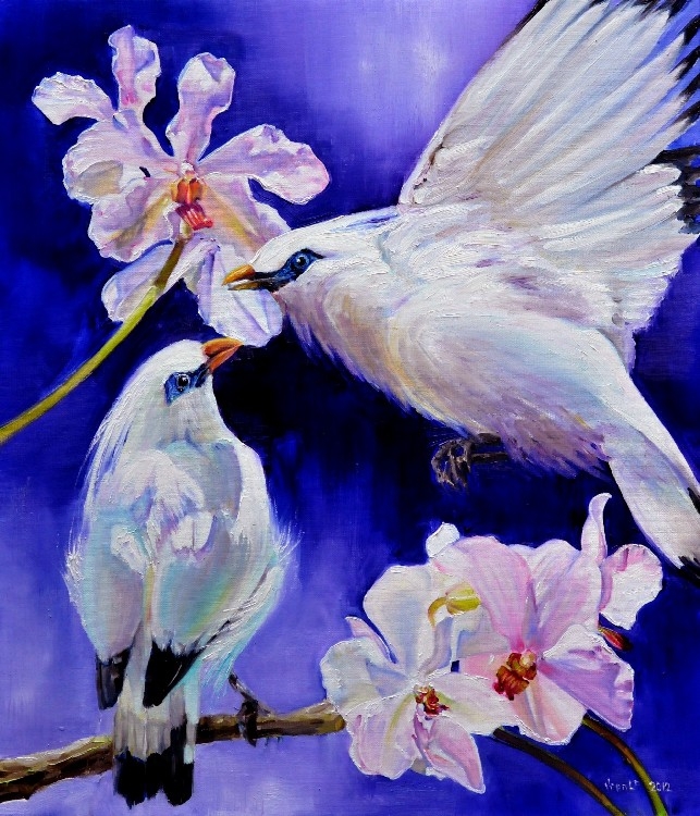 Bali Starling Spreeuw Bird Vogel Blauw Blue Oi Olieverf Schilderij Painting Realism Realisme