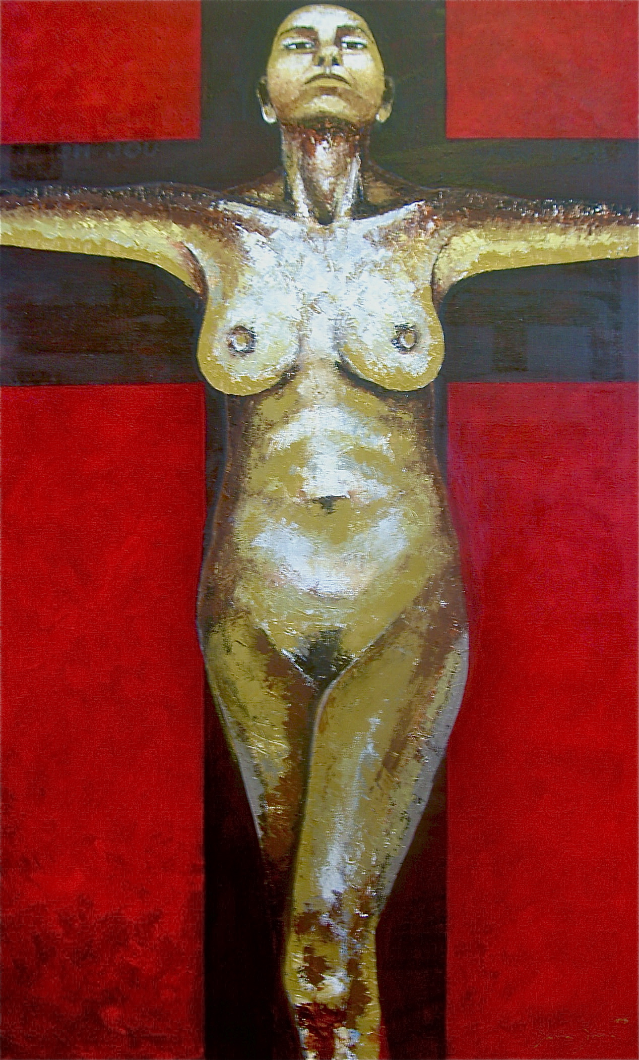 Rood Vrouw Trots Olieverf Religie Vrouwelijk Kracht Kwetsbaar Krachtig Geloof Kruis Kwetsbaarheid Eva Boete