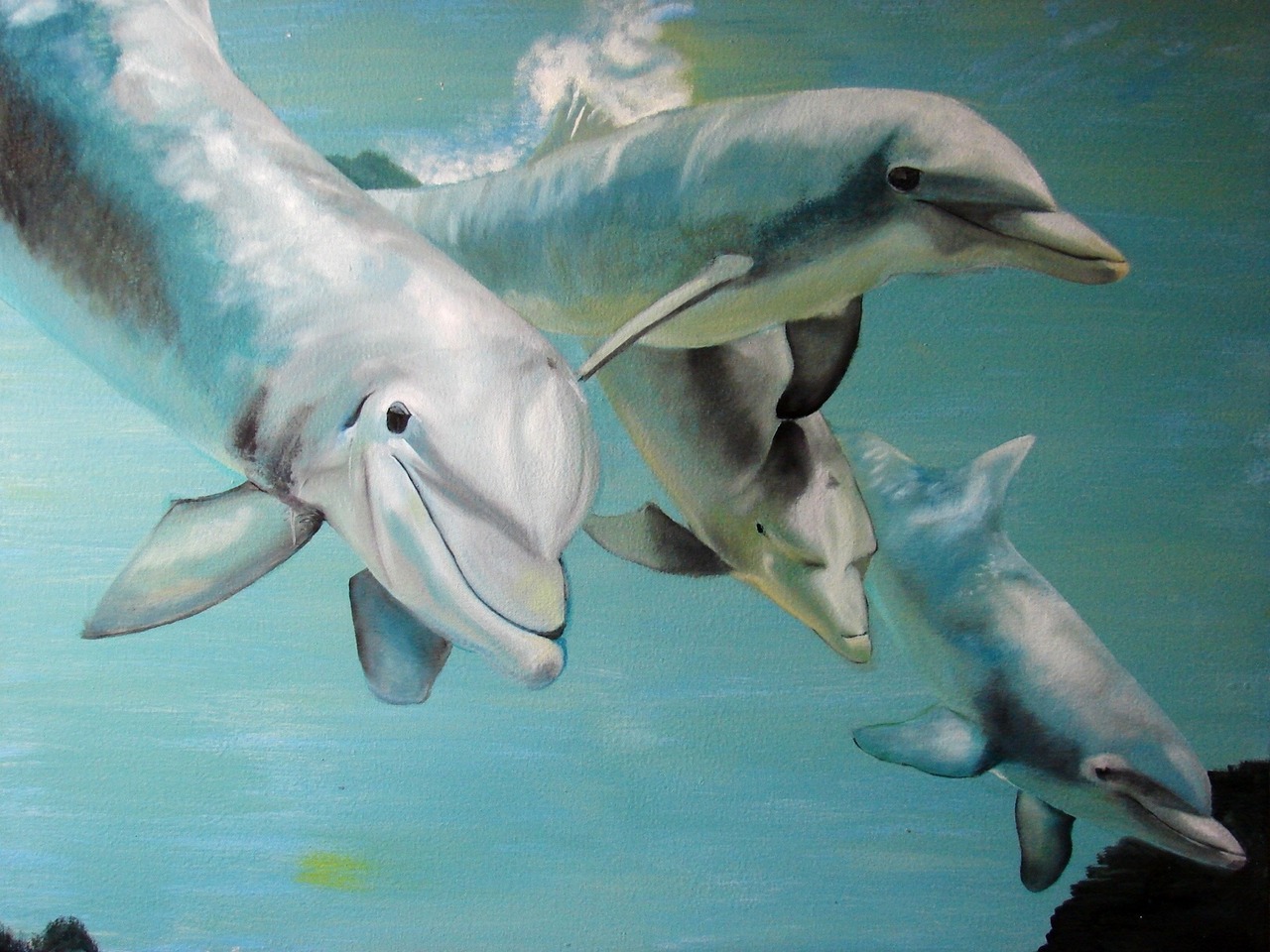 Dolfijnen geschilderd met olieverf
