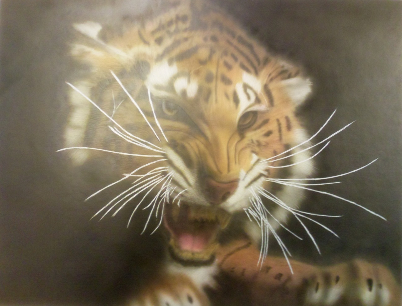 Airbrush van een brullende tijger