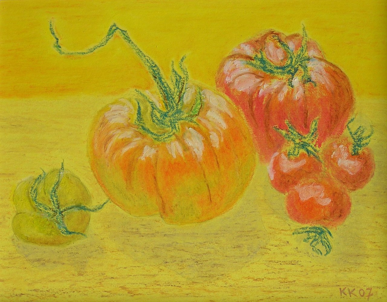 Tomaten Rijp Onrijp Stilleven Oliepastel