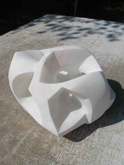 Het inwendige van de steen is in dit beeld ook vormgegeven. Het licht speelt op het oppervlak van de vormen en in de holtes, gangen en inwendige vormen van de steen.