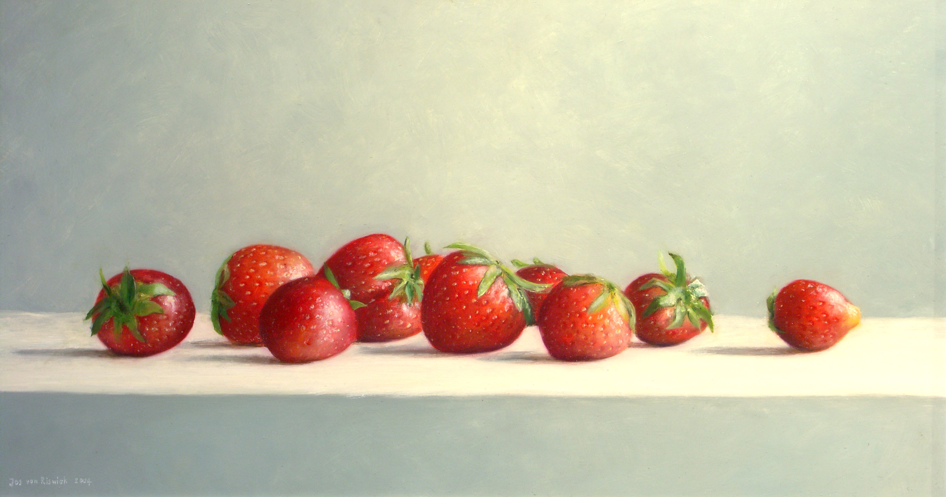 Stilleven met aardbeien, olieverf op paneel, 63x33 cm