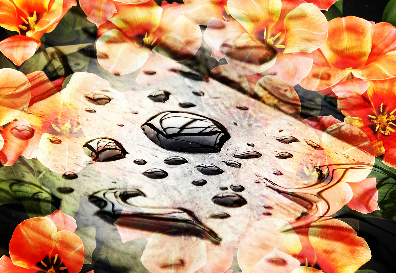 BLOEMEN, DRUPPELS, BEWERKT