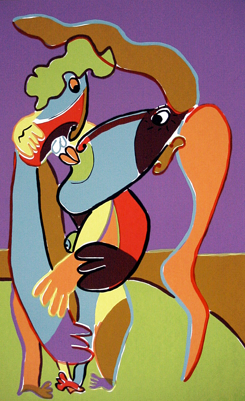 Oplage 25, prijs inclusief lijst 70 x 90 cm, zonder lijst is de prijs 325 Euro De zeefdruk Wapperende haren is te huur voor 5,50 Euro per maand
